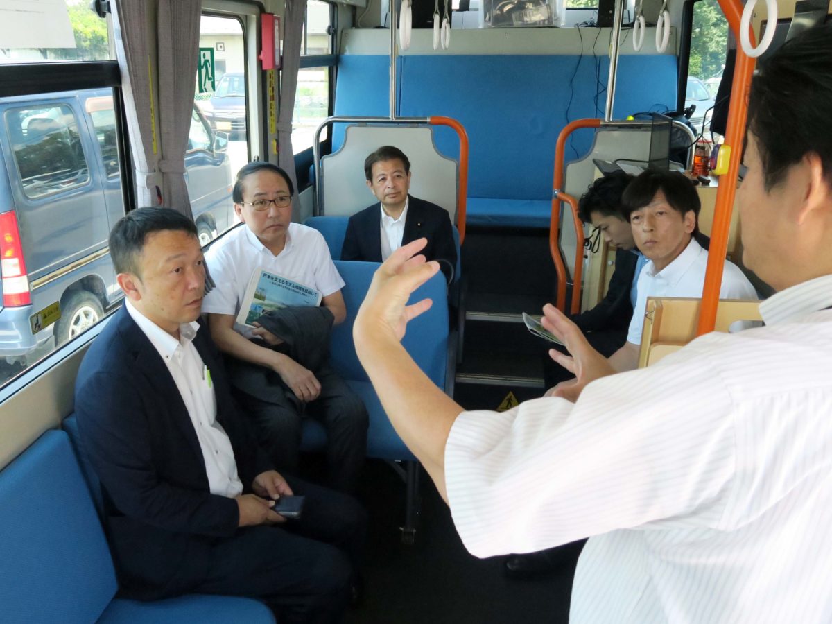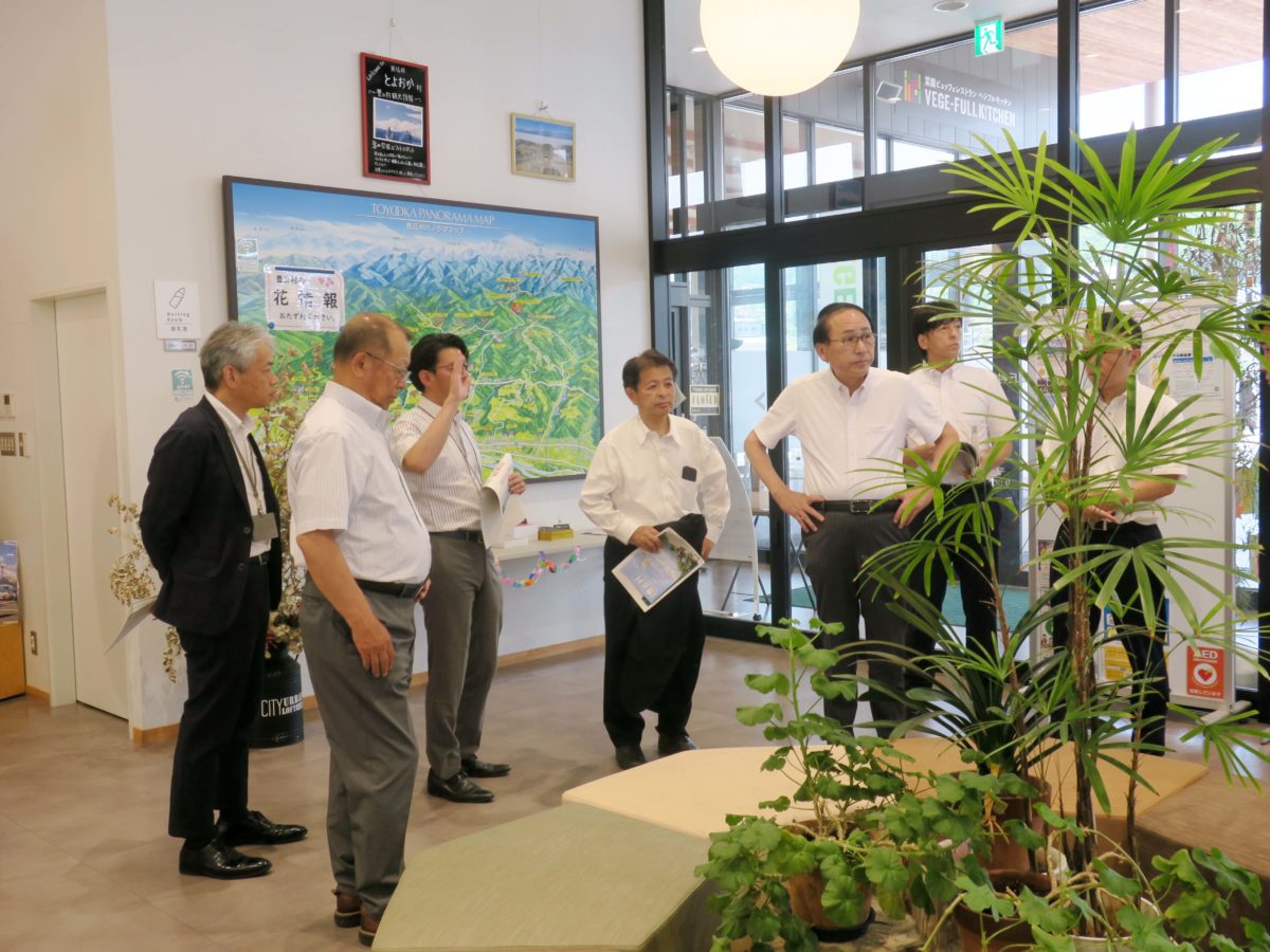 午後2時前からは、「とよおかマルシェ」を訪問し、村の情報発信拠点や農産物直売所、地元の新鮮な野菜や果物を提供する農家レストラン、地域間を結ぶコミュニティーバス、観光拠点施設などについて説明を受けました。