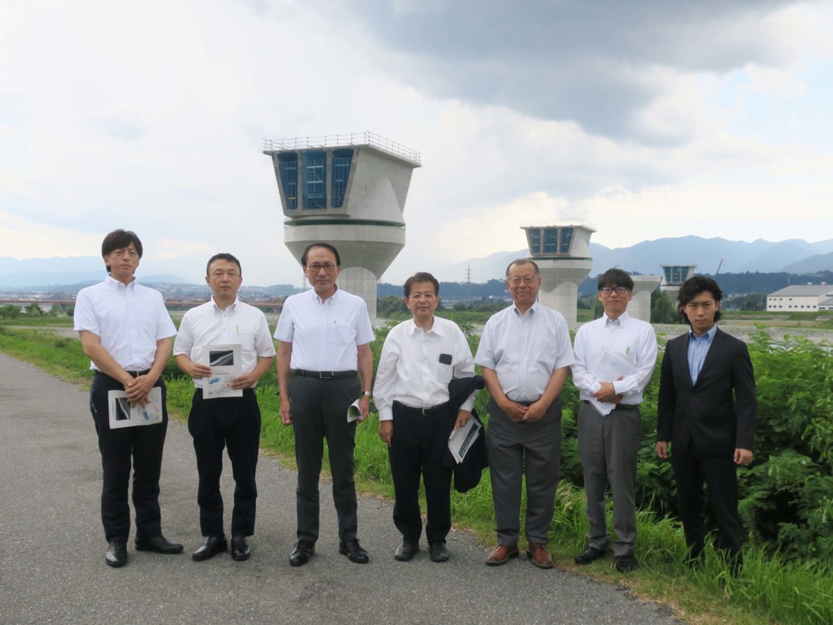 視察の最後に、リニア中央新幹線の天竜川架橋の橋脚工事の現場を視察しました。着実に、工事が進捗していることを実感しました。