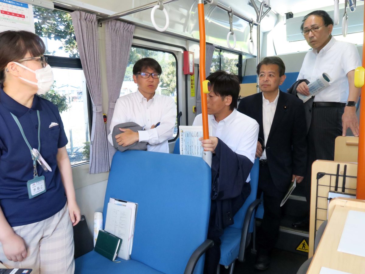 午前10時30分からは、JRバス関東伊那支店において、「モバイル公民館」の視察を行いました。メインの公民館とオンラインでつなぎ、健康体操や合唱などを行っている取り組みについて説明を受けました。