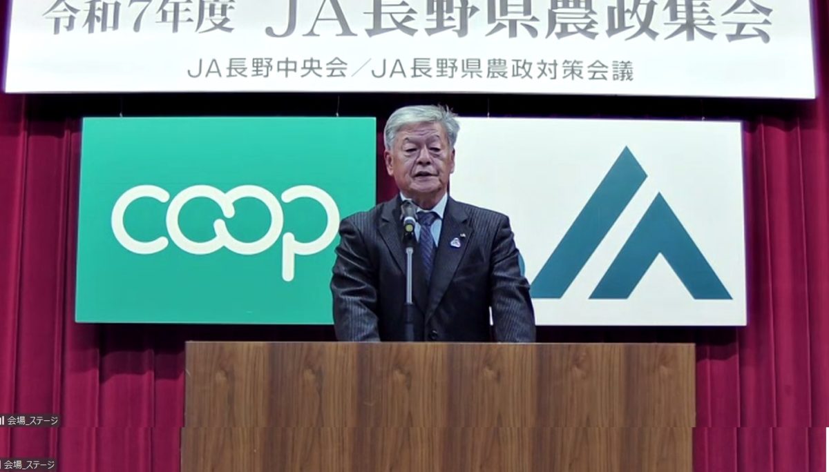 午前11時30分からは、長野市において開催されたJA長野中央会主催による「令和7年度JA長野県農政集会」にWEBを用いて参加しました。