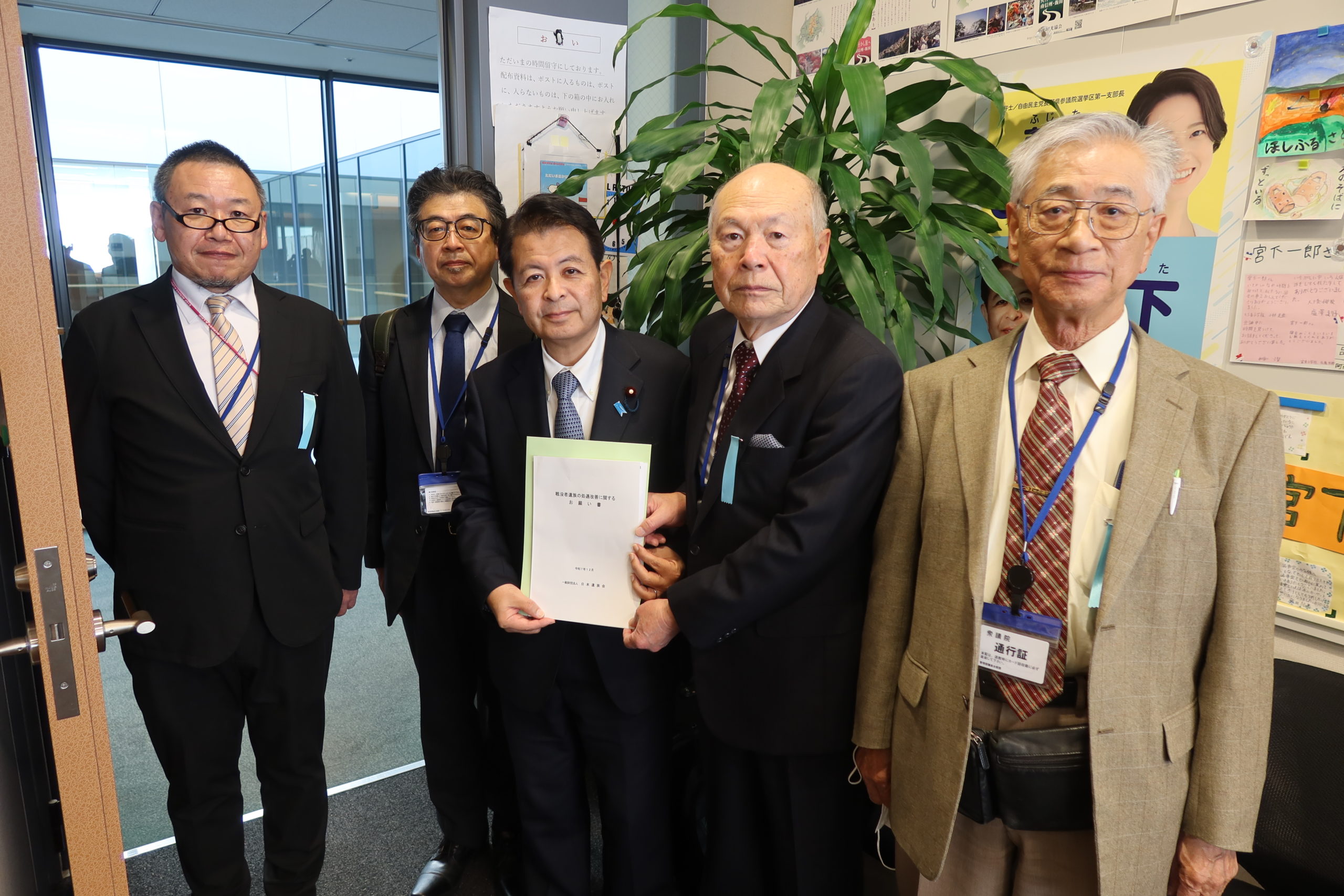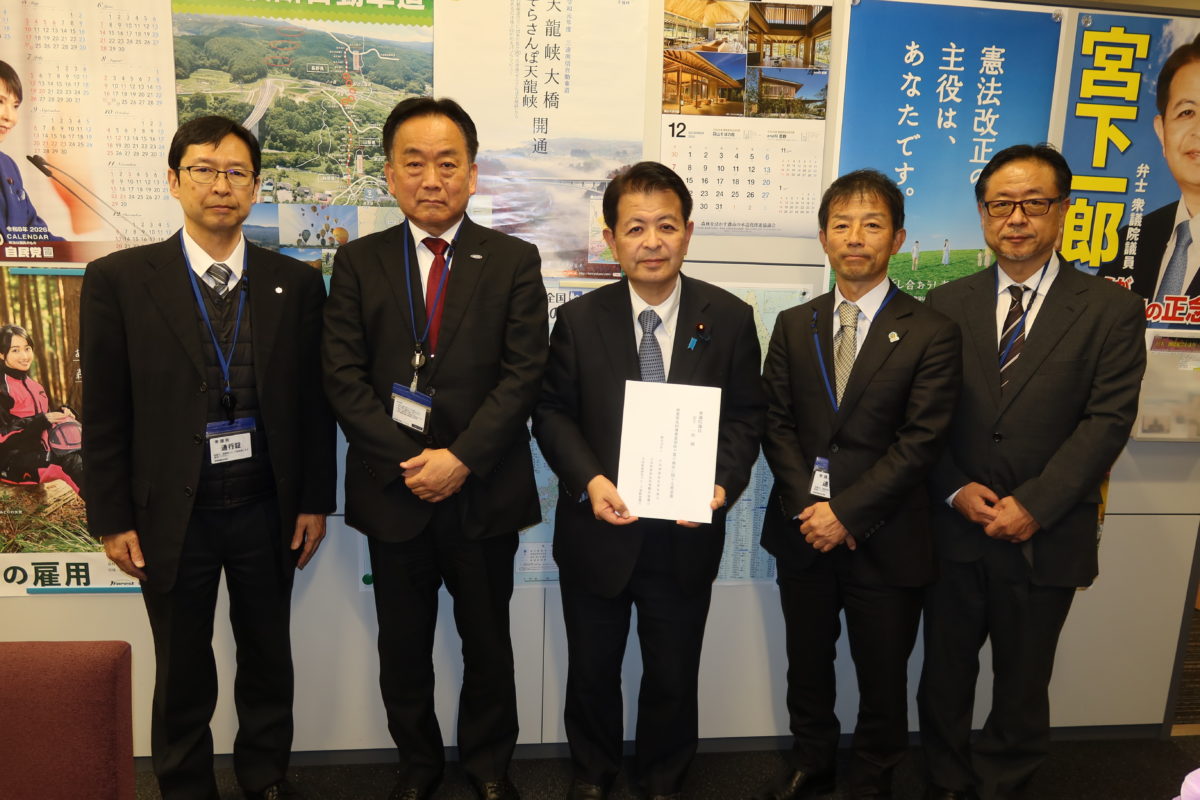 午後4時過ぎからは、長野県林業研究グループ連絡協議会の田中忠会長をはじめとする全国林業改良普及協会の皆様がお見えになり、「林業普及指導事業関係予算の確保に関する要望書」を頂きました。