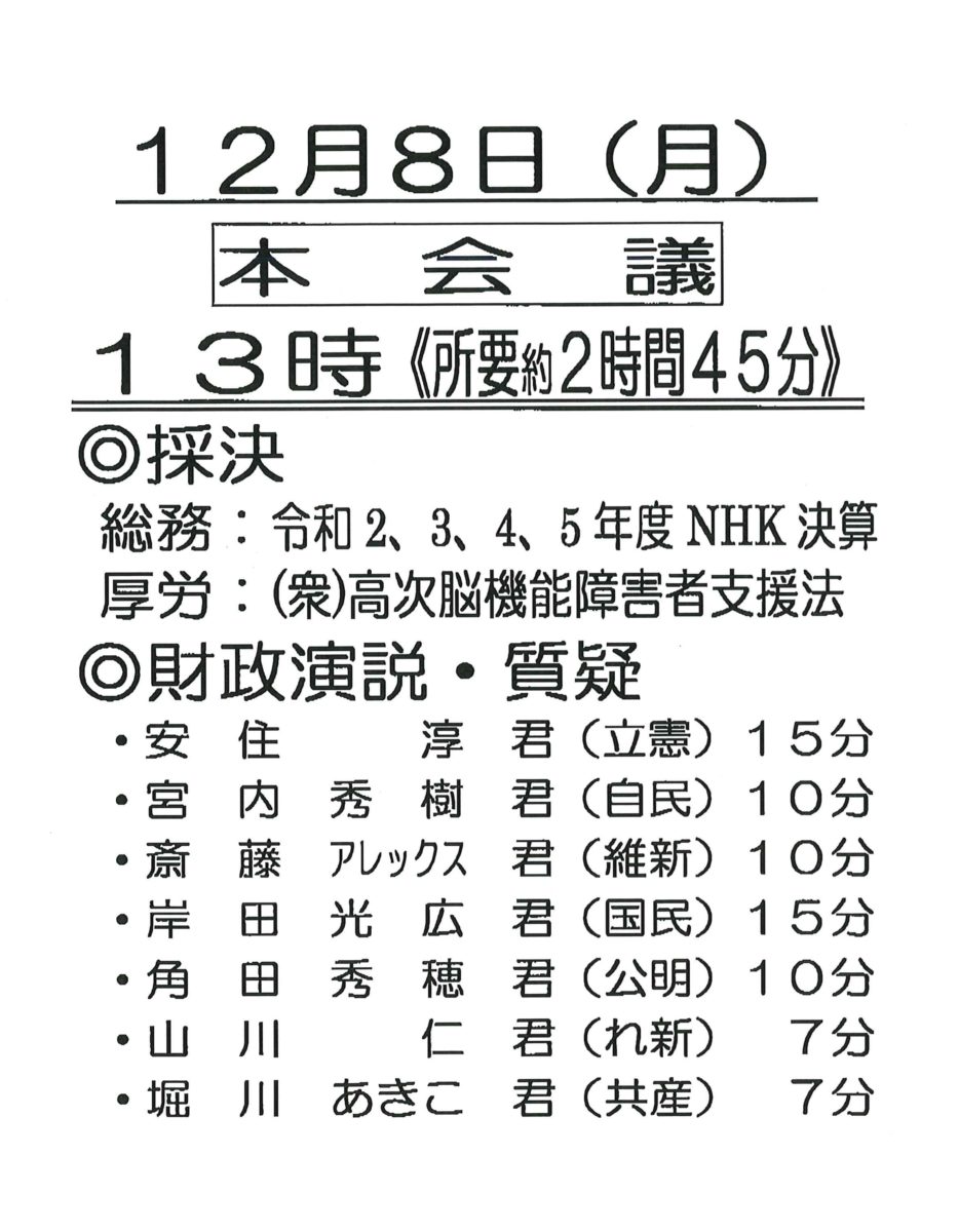12月8日は、箕輪北小学校の国会見学で挨拶、白鳥孝伊那市長と面会し、再審法改正議連総会、ブロックチェーン議連総会、衆議院本会議に出席しました。