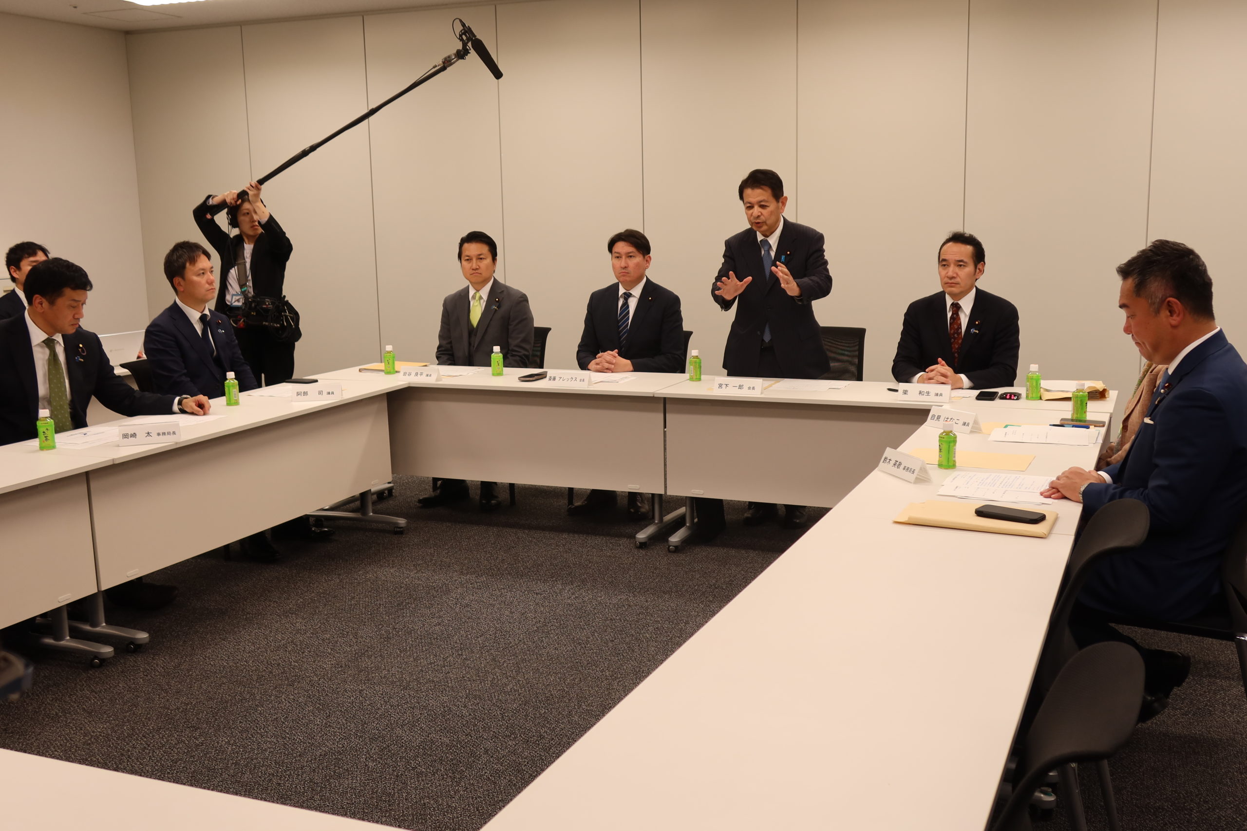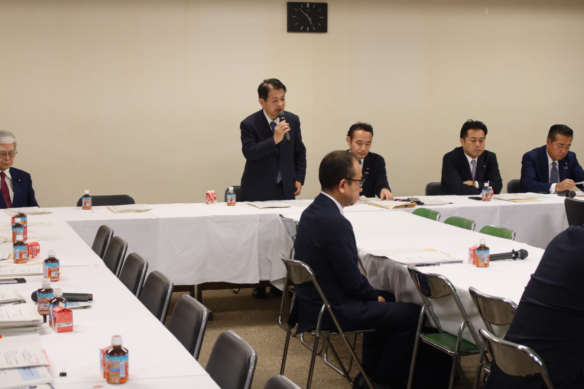 冒頭、自民党側の会長の立場で、私からご挨拶を申し上げました。