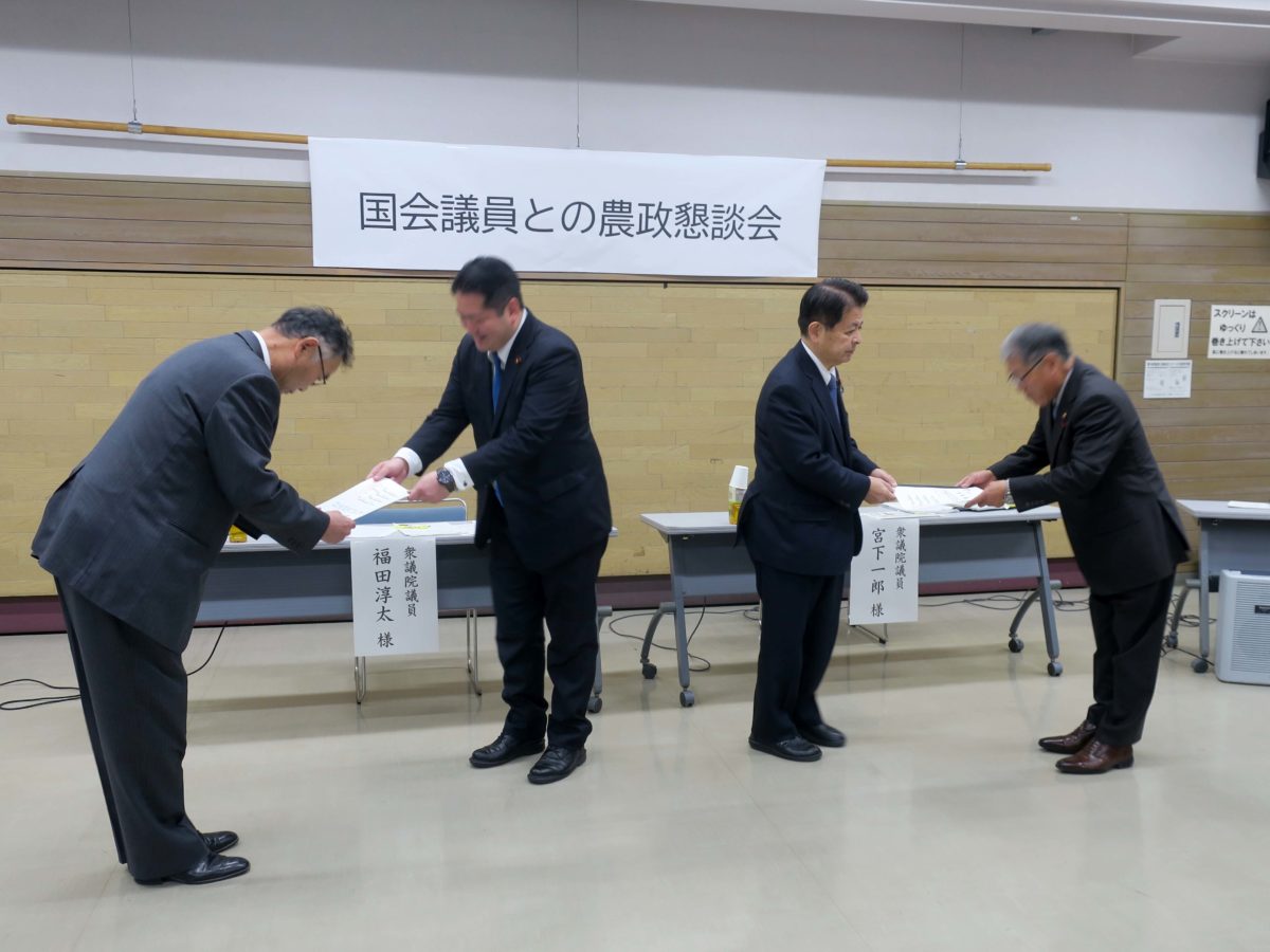 本日は、「米政策・需給・価格の安定化」、「農地利用と荒廃農地対策」、「中山間地の農地整備と機械利用支援」、「担い手確保と経営支援」、「スマート農業・有機農業と規制緩和」、「農業委員会制度の運営」の6つのテーマを中心に懇談が行われました。