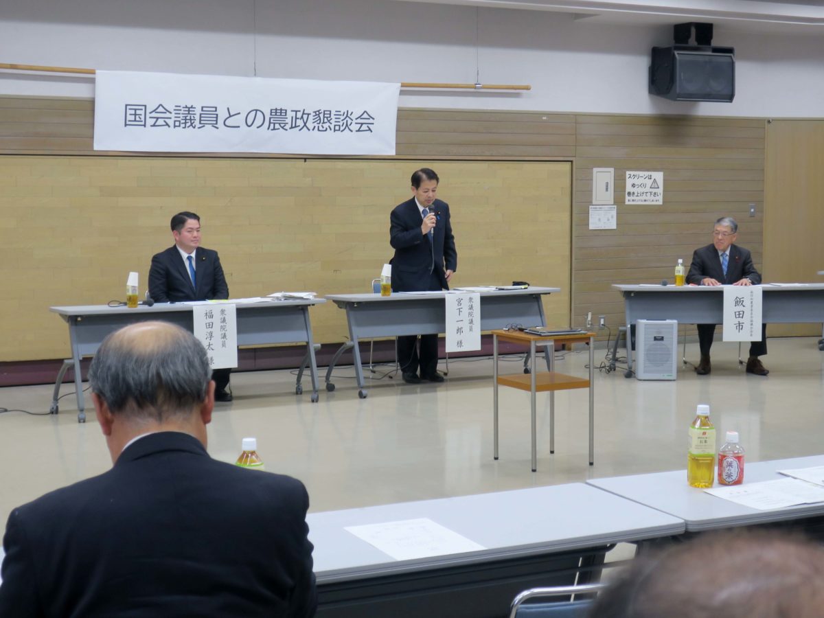 午前10時からは、飯田市において開催された南信州・上伊那農業委員会協議会主催による「農政懇談会」に出席しました。