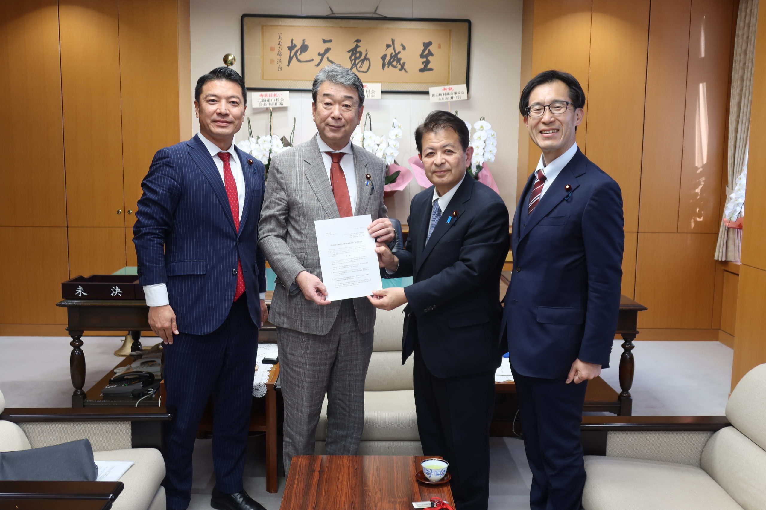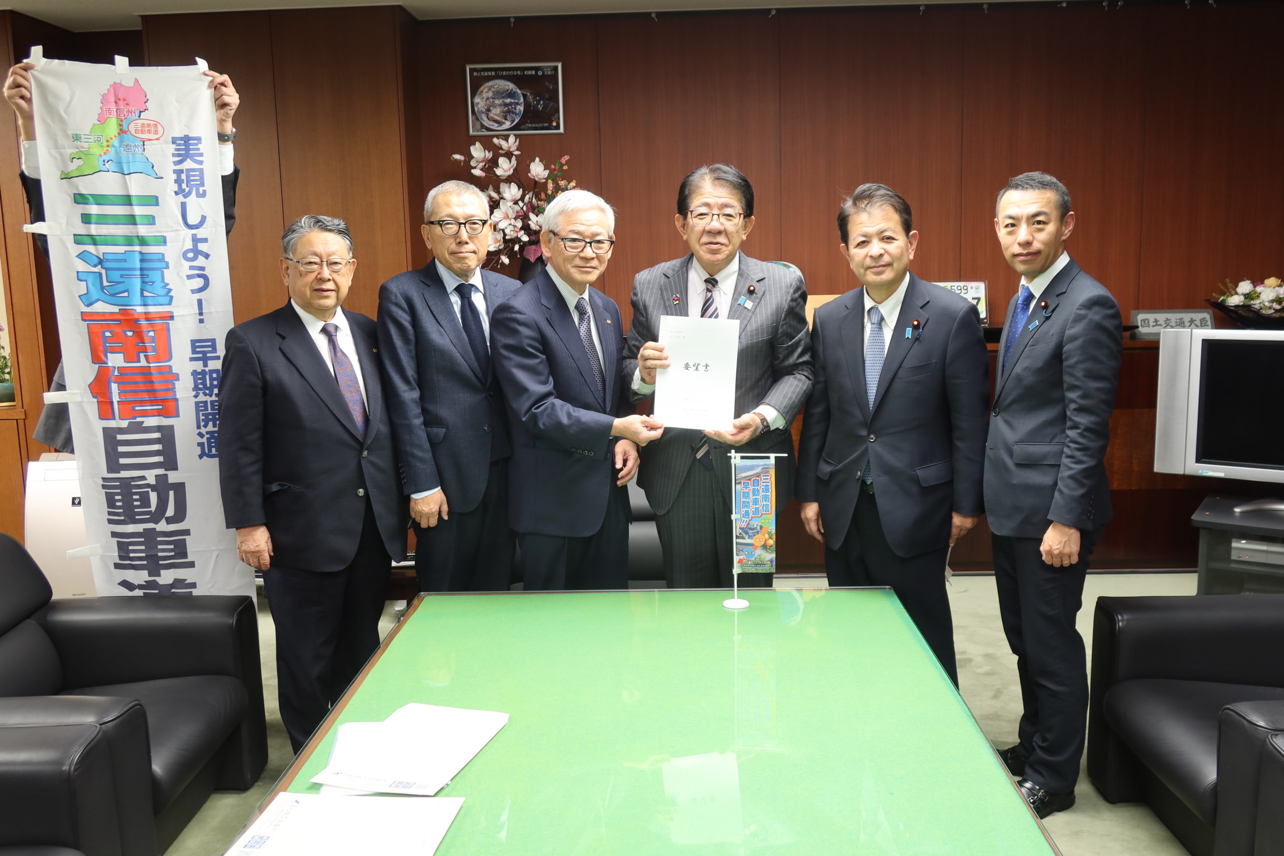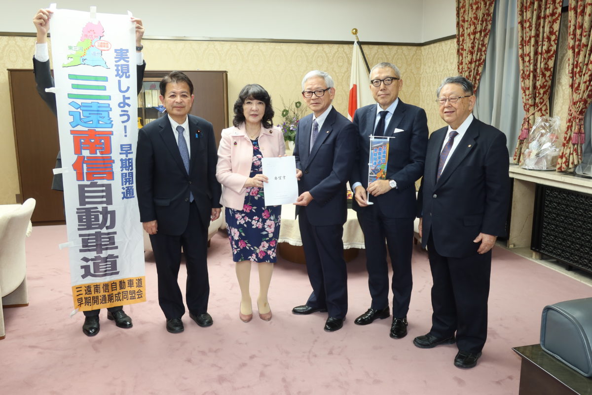 午後3時45分からは、国土交通省の金子恭之大臣に対して、飯田商工会議所の原勉会頭とともに、「三遠南信自動車道早期開通期成同盟会の要望活動」に出席をしました。