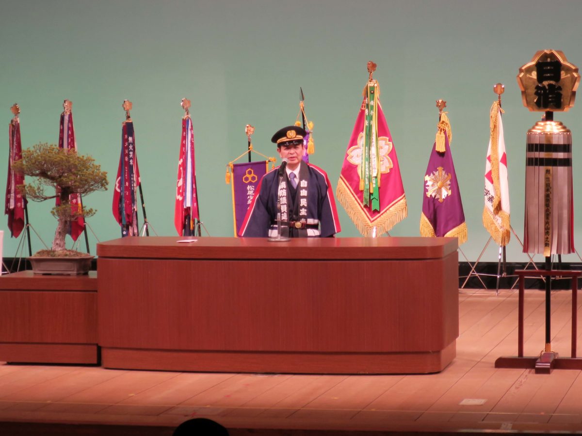 私からは、飯田市消防団の皆様による地域へのご貢献に心から敬意と感謝を表し、令和8年度から新たな飯田市消防力整備計画がスタートすることを踏まえ、さらにパワーアップして地域の安全・安心と地域防災力の充実強化にご尽力を頂くことをお願いし、お祝いのご挨拶を申し上げました。
