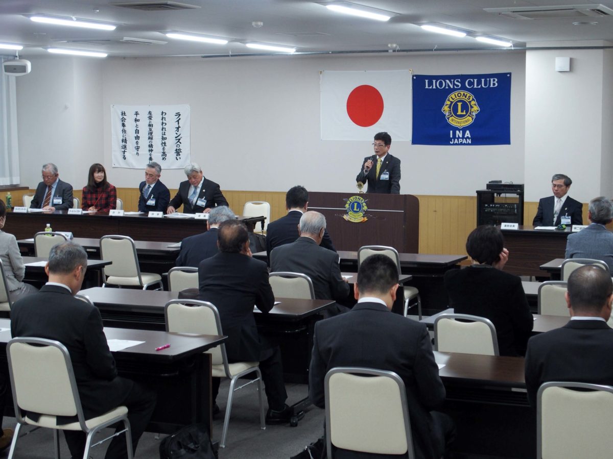 私からは、伊那ライオンズクラブの皆様による奉仕の精神と、社会貢献活動に心から敬意と感謝を申し上げるとともに、首都圏の企業の地方へのバックアップ拠点設置を支援し、東京一極集中の是正を図るとともに、三遠南信自動車道やリニア中央新幹線の開通に向けて、伊那谷の発展に全力で取組んで行くことをお約束し、心豊かな地域づくりのためにも、皆様の一層のご活躍をお願いして、ご挨拶を申し上げました。