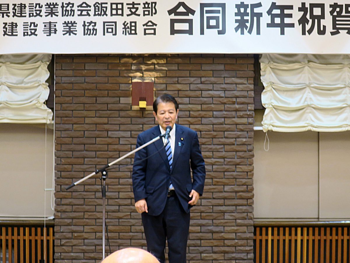 午後6時30分からは、飯田市において、「長野県建設業協会飯田支部・飯田建設事業協同組合合同新年会」に出席しました。