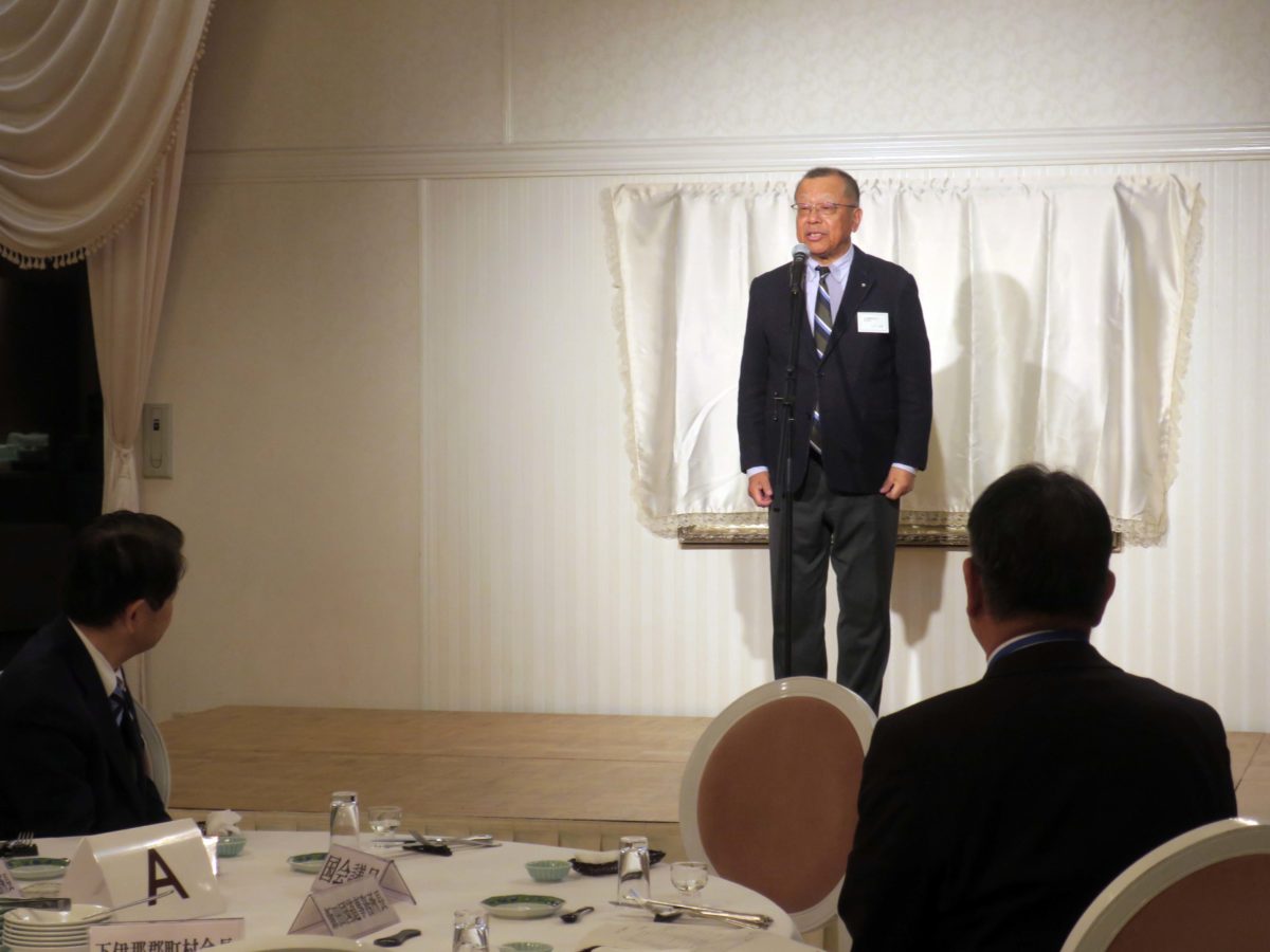 冒頭、下伊那郡町村会会長の下平喜隆豊丘村長からご挨拶がありました。