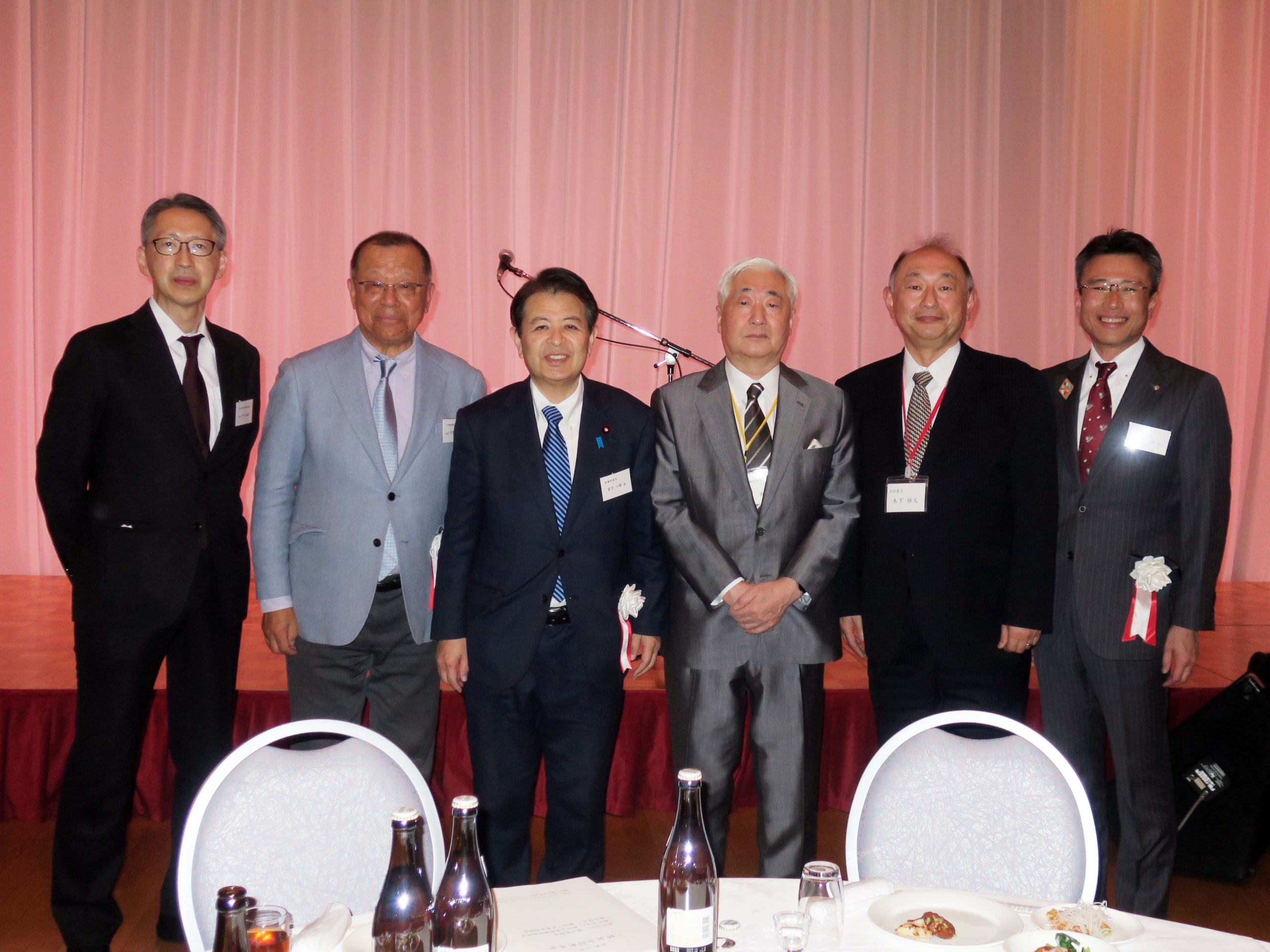 会場で、飯田医師会の建石徹会長、飯田下伊那歯科医師会の牛木猛雄会長、飯田下伊那薬剤師会の木下雅文会長、飯田市の佐藤健市長、下伊那町村会長の下平喜隆村長にご挨拶し、記念写真を撮りました。
