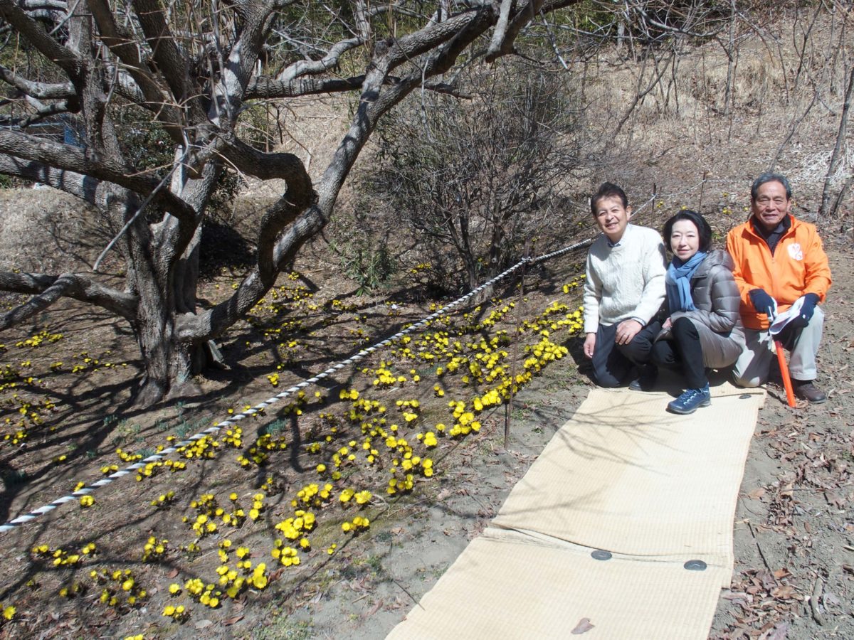 沢底の様々な斜面に、多くの福寿草が黄金色の花を咲かせ、ひと足早い春の訪れを感じることができました。