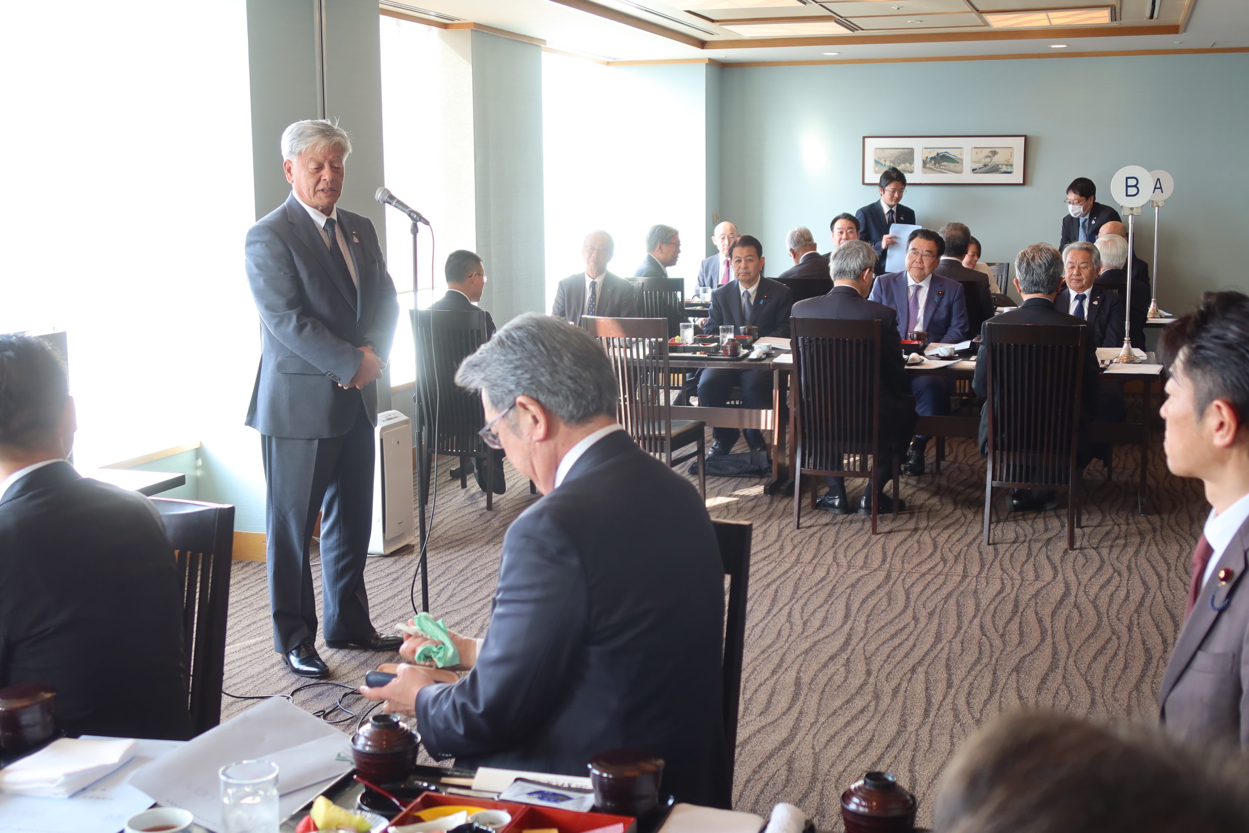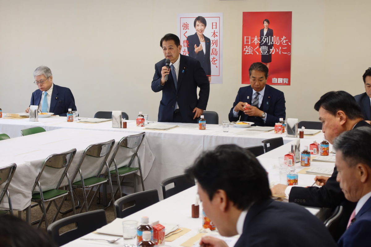 出席議員挨拶では、私から、自民党総合農林政策調査会長としての活動として、農業構造転換集中対策の施策や、新たな水田・畑作政策の方向性、飲食料品の消費減税伴う課題への対応など、取組状況を申し上げ、農業の発展と成長産業化に向けて力を尽くしていくことをお誓いし、ご挨拶を申し上げました。