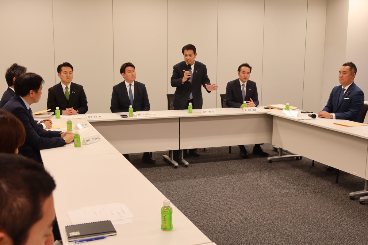 冒頭、自民党側の会長の立場で、私からご挨拶を申し上げました。