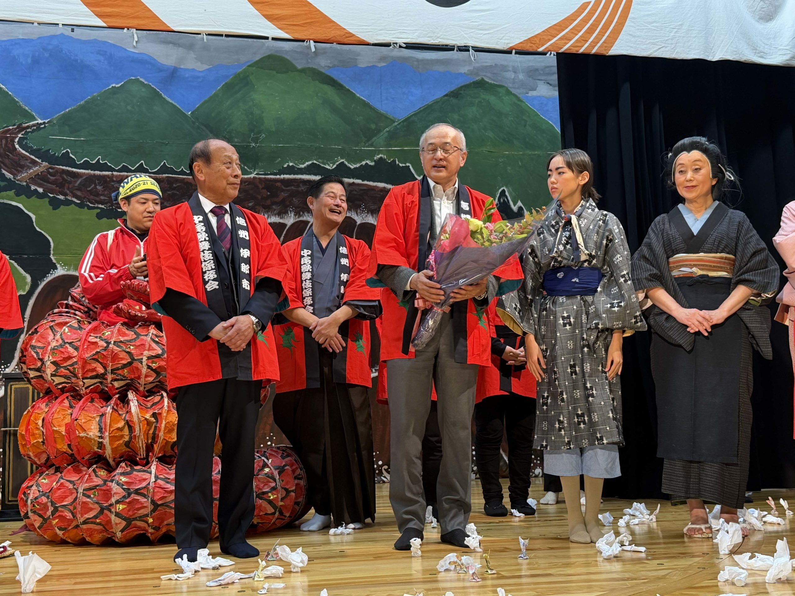 様々な思いのこもった脚本と演出、そして役者の皆様の渾身のお芝居に、沢山の声援とおひねりが飛び交い、場内は大いに盛り上がりました。改めて、中尾歌舞伎の魅力を感じた公演でした。