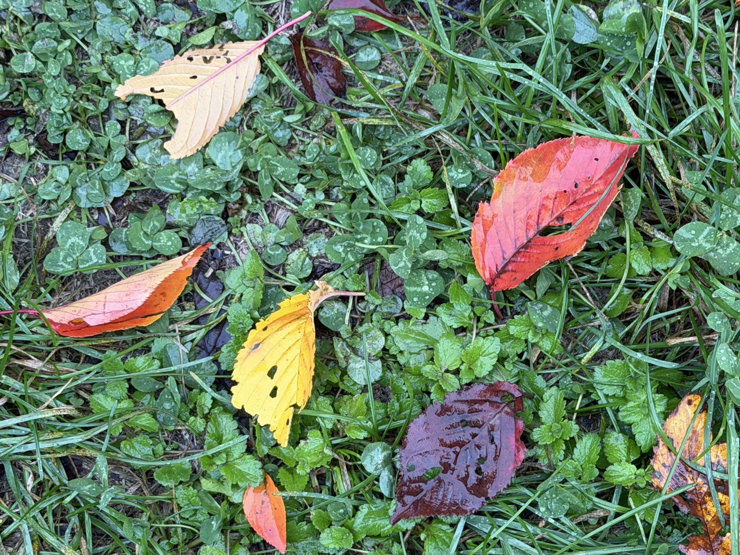 桜並木の足元に落ちていた様々な色のはっぱを並べて写してみました。