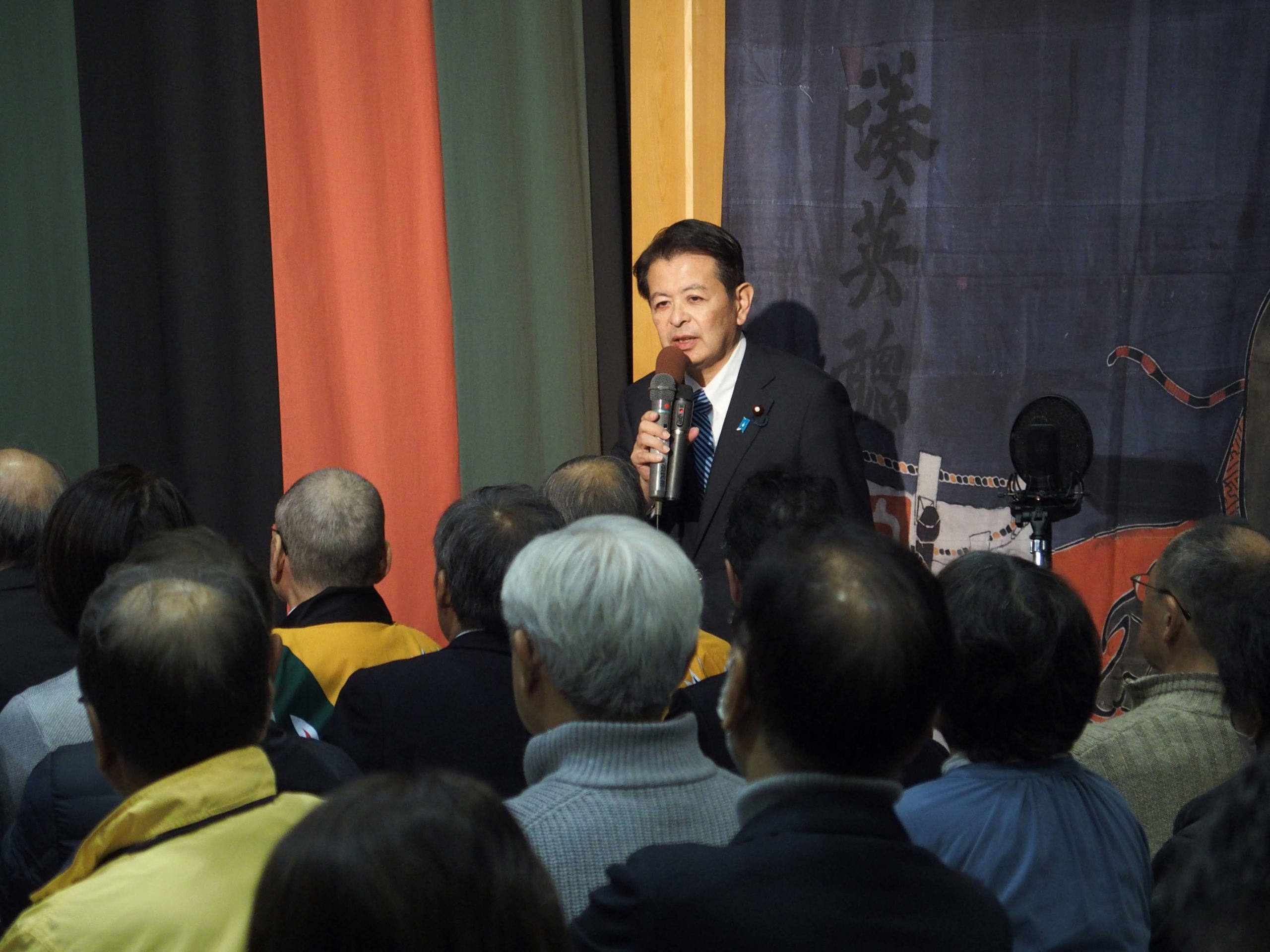 続いて、私から、中尾歌舞伎秋季公演開催にあたり、お祝いのご挨拶を述べるとともに、この地域が再び三六災害のような災害に見舞われることがないよう、戸草ダムの建設に向けて努力することをお誓いしました。