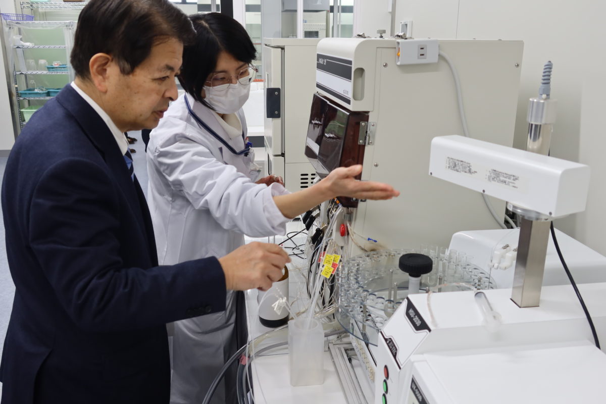 2階の「南信州環境分析センター」のフロアでは、水質検査・食品検査などに使用される様々な高精度の検査機器について説明を受けました。