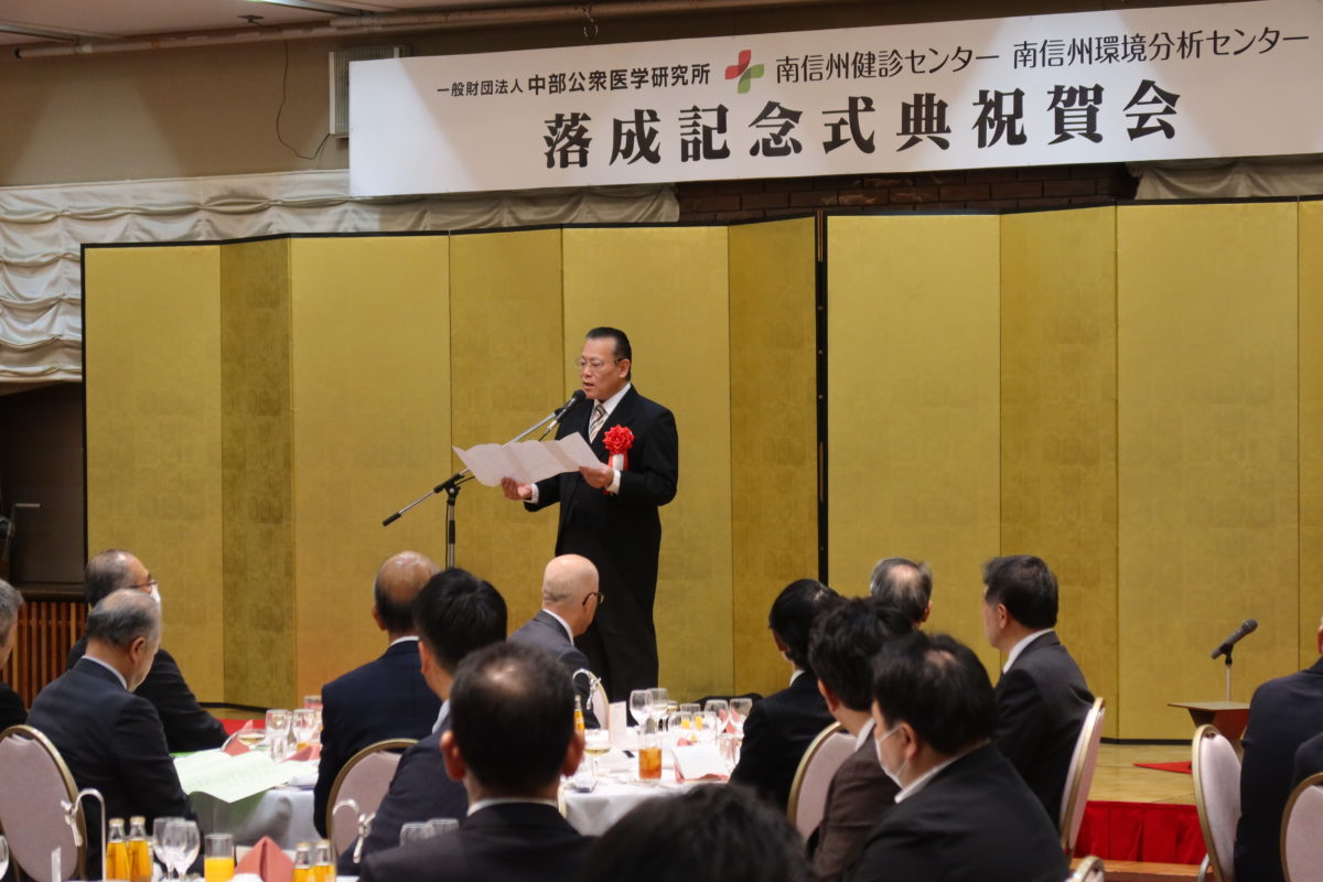 私から、中部公衆医学研究所の新社屋落成を心から御祝申し上げるとともに、最先端の機器や施設設備の活用により、地域住民の健康増進と生活環境の保全にご貢献頂くことを期待し、ご挨拶をしました。
