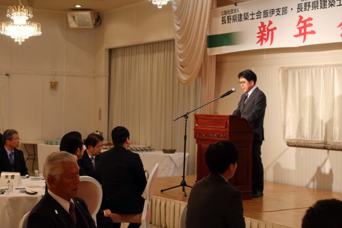 冒頭、長野県建築士事務所協会飯伊支部の新井優支部長からご挨拶がありました。