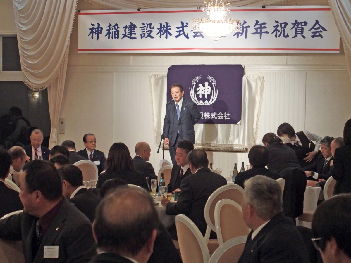 午後6時過ぎからは、飯田市で開催された「神稲建設新年祝賀会」に出席しました。