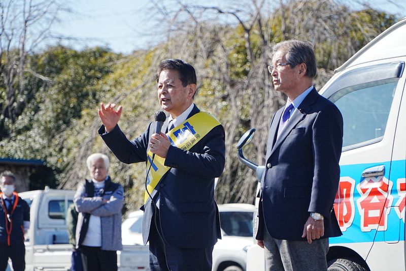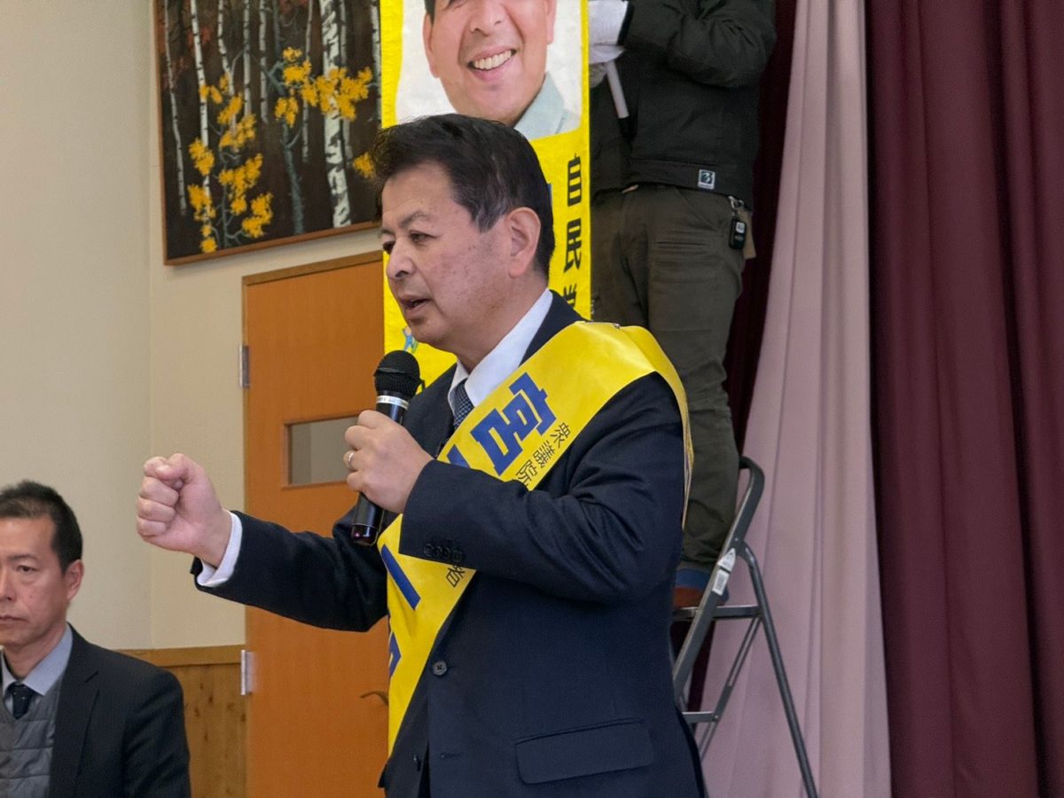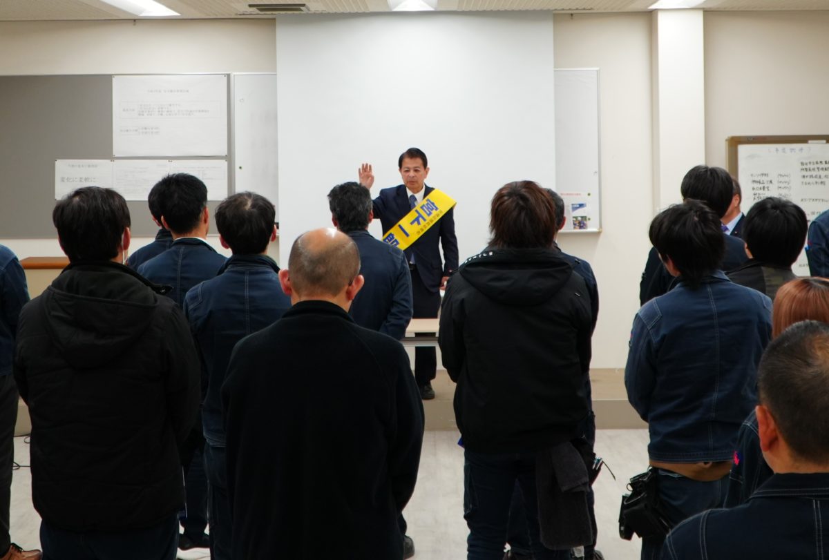 高森町の神稲建設駐車場において街頭演説会を開催しました。