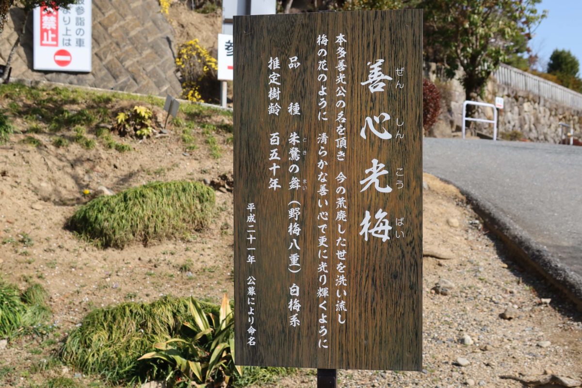 この梅は推定樹齢150年で、2009年(平成21年)に、元善光寺を開いた本多善光の名にちなみ、公募により命名されたそうです。