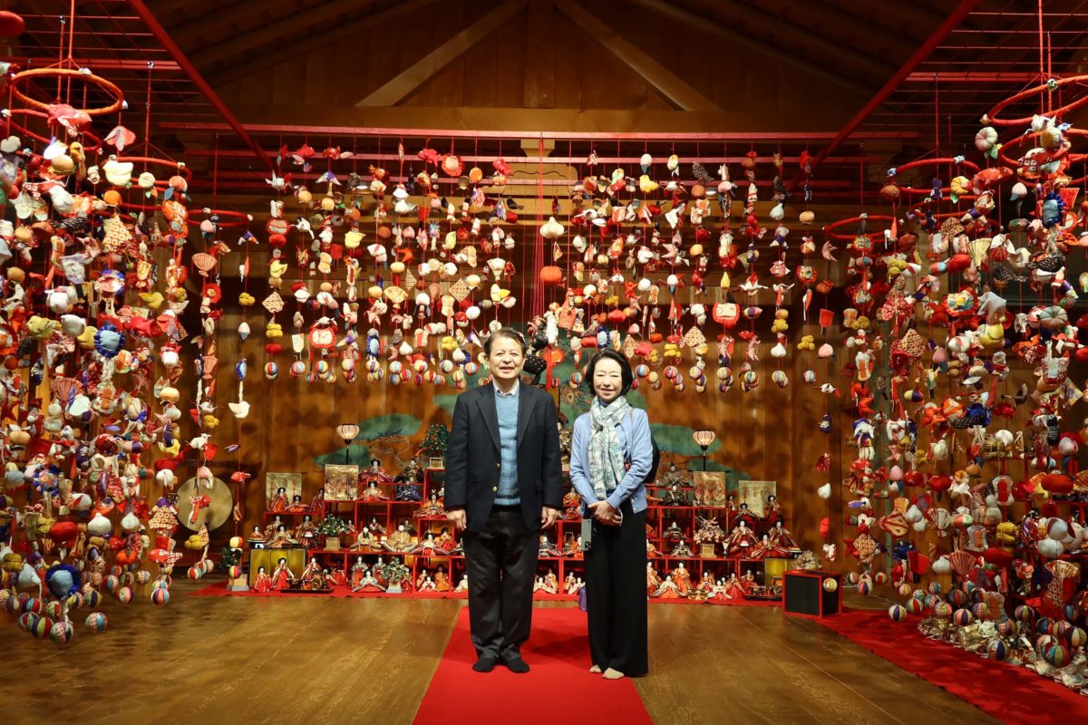 阿智村の昼神温泉に移動し、「石苔亭いしだ」で無料で公開されている「ひな飾り」を鑑賞しました。昼神温泉郷地区では、2月1日から4月3日までひな祭りが開催され、十数か所で様々な展示が行われています。「石苔亭いしだ」では、つるしびなと雛人形をあわせて二千体が展示されています。