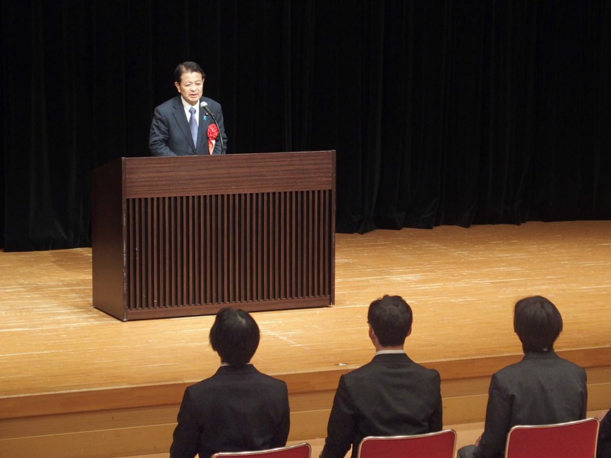 来賓祝辞では、私から、難関を突破して入隊・入校をされる皆様と、ご家族の皆様に心からお祝いを申し上げるとともに、国際情勢が大きく変化し、自然災害も頻発化するなど、自衛隊の果たす役割がさらに重要になっていることを踏まえ、防衛関係予算を確保し、防衛力強化や自衛官の処遇改善などに力を尽くしていくことをお誓いしご挨拶を申し上げました。