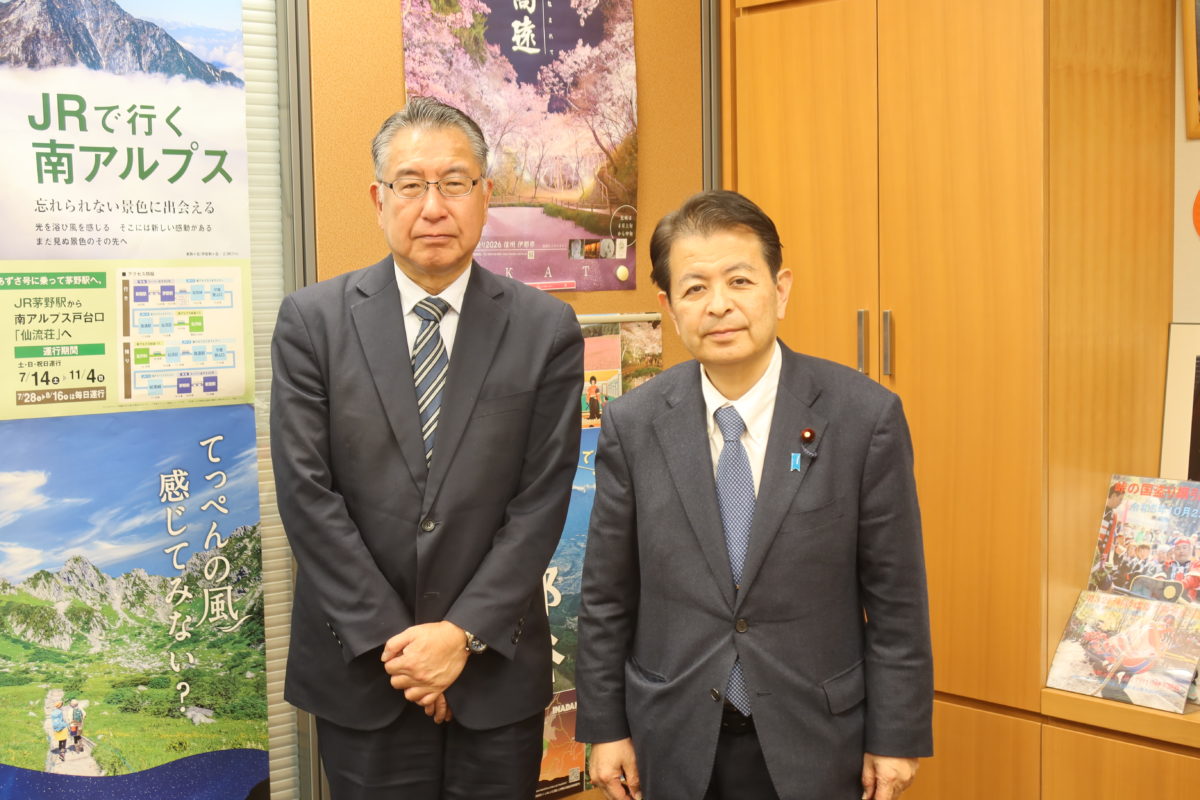 伊那谷における道路整備の現状や今後の見通しについてお話を伺い、中川所長のこれまでのご尽力に心から感謝を申し上げました。