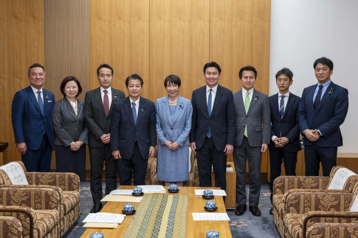 引き続いて、午後6時30分からは、首相官邸を訪問し、高市早苗総理大臣に対して「統治機構改革協議体」での議論の経緯について報告をするとともに、与党実務者において合意した「国家社会機能継続性確保施策の推進及び副首都の整備に関する法律案(仮称)骨子案」の内容について説明をしました。