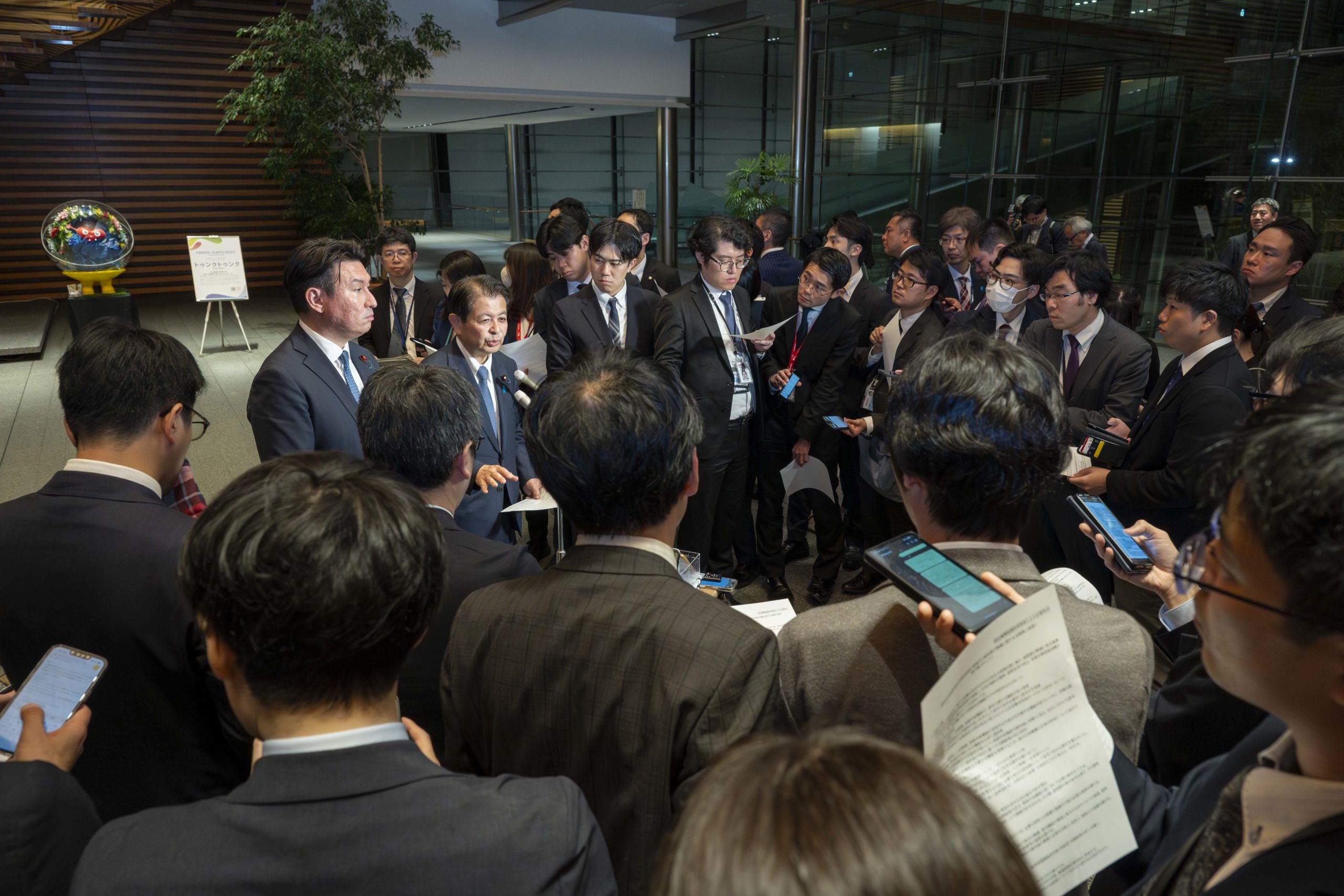 統治機構改革協議体の自民党の会長として、記者の皆さまからの質問にお答えをしているところです。