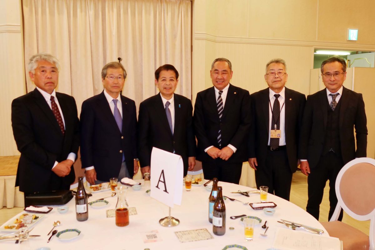 続いて開催された「懇親会」では、飯田市自衛隊家族会や飯田市自衛隊協力会をはじめとする皆さまと懇談をさせて頂きました。写真は、同じテーブルの皆様との記念写真です。