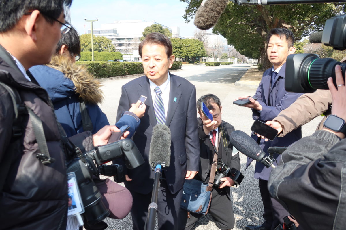地元報道各社の皆さまから、初登院の受け止めや衆議院8期目の意気込みなど囲み取材を受けているところです。