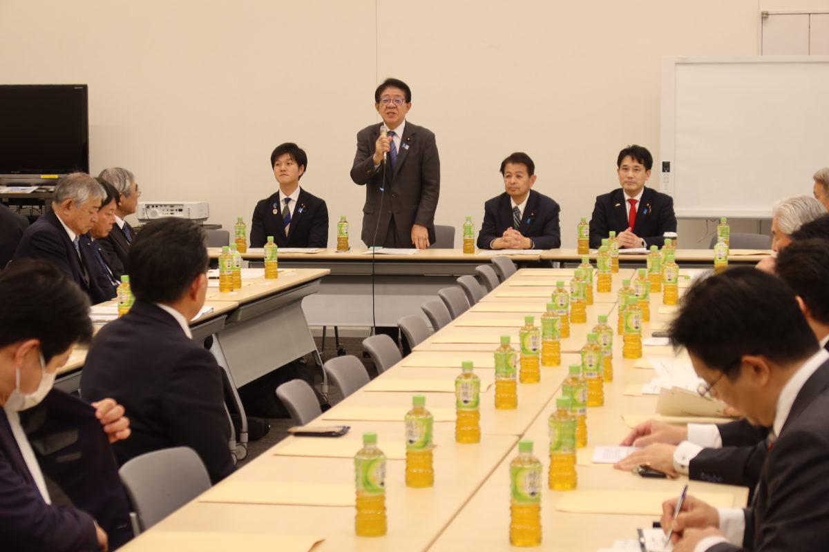 冒頭、砂防議連の鈴木俊一会長からご挨拶があり、引き続き、国土交通省の金子恭之大臣、林正道水管理・国土保全局長よりご挨拶を頂きました。