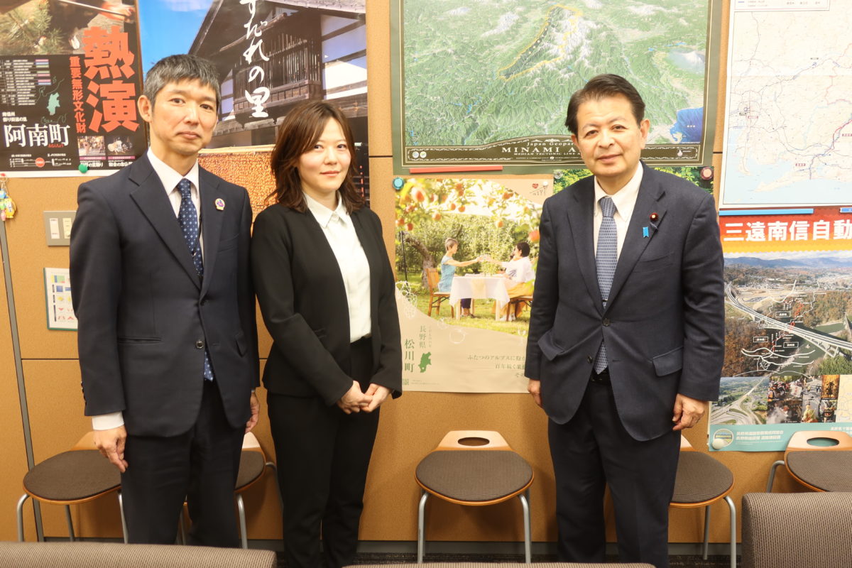 午前11時30分には、私の地元の松川町から農林水産省へ出向されていた吉野愛那さんが、人事交流を終え、松川町にお戻りになるということで、議員会館の事務所にご挨拶にお越しくださいました。