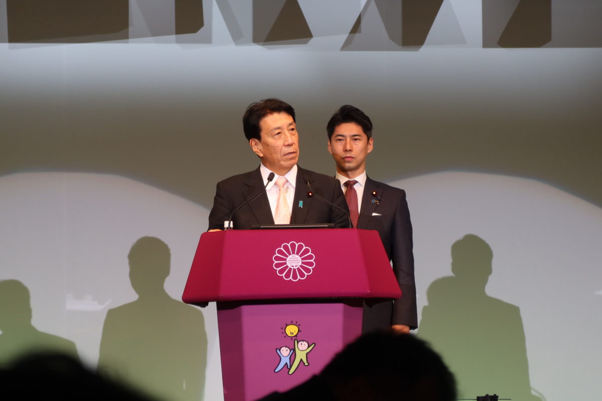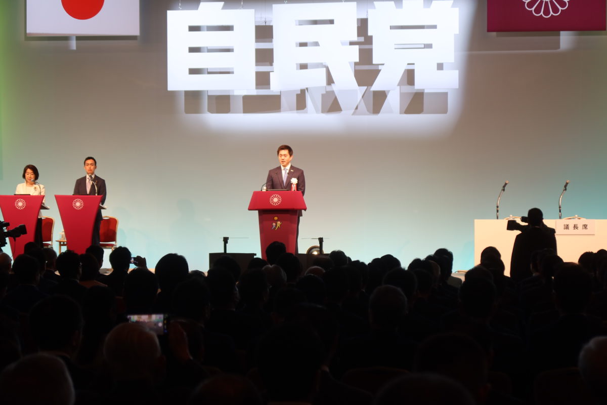 引き続いて、新ビジョン策定本部の斎藤健座長と中曽根康隆紀壮委員長から、自民党の歩みと未来への使命を示した「立党70年新ビジョン」の発表がありました。