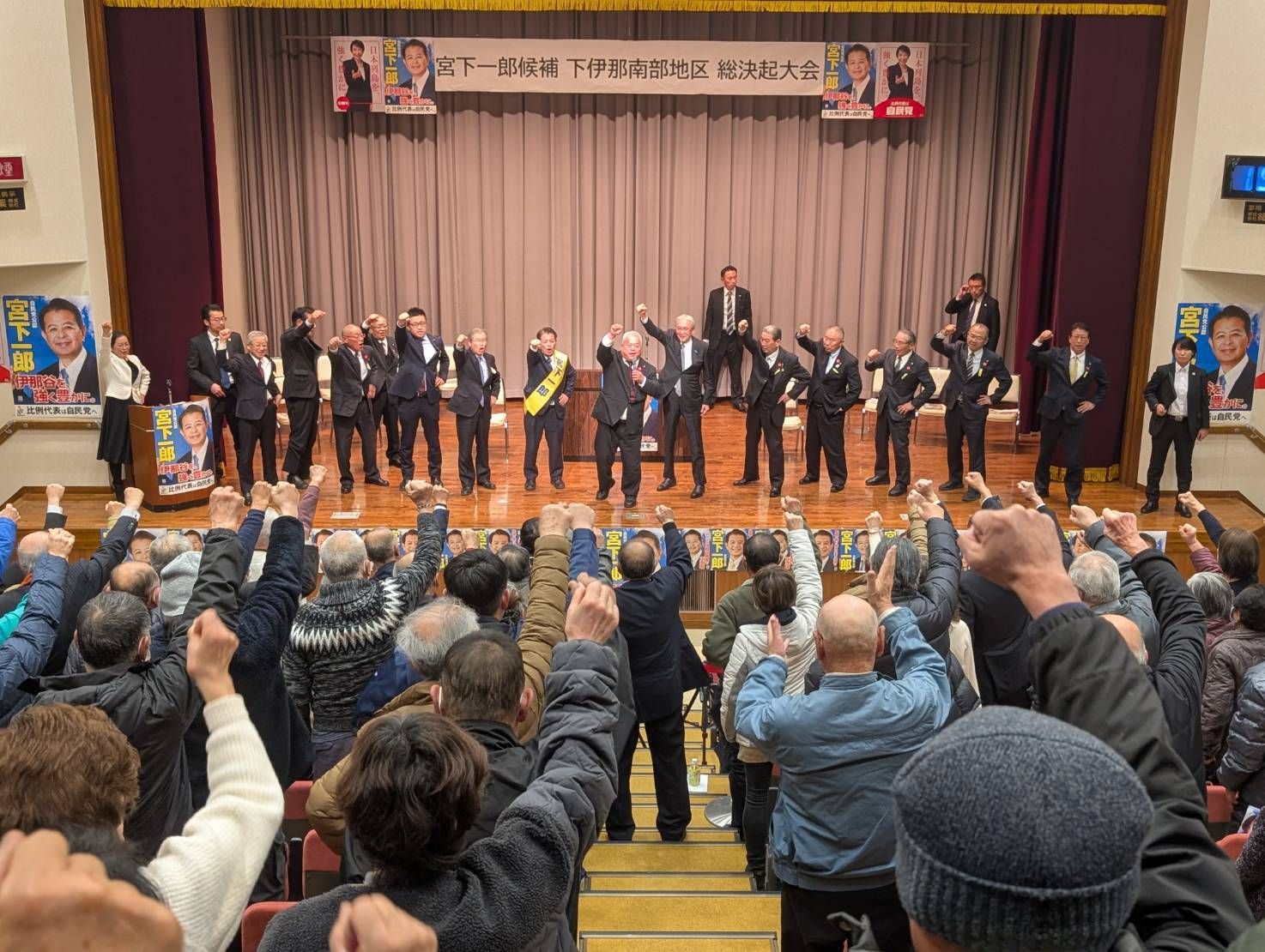 宮下一郎の「伊那谷を理想郷に」との思いを実現させるためにも、今回の選挙の絶対勝利を固く誓いました。