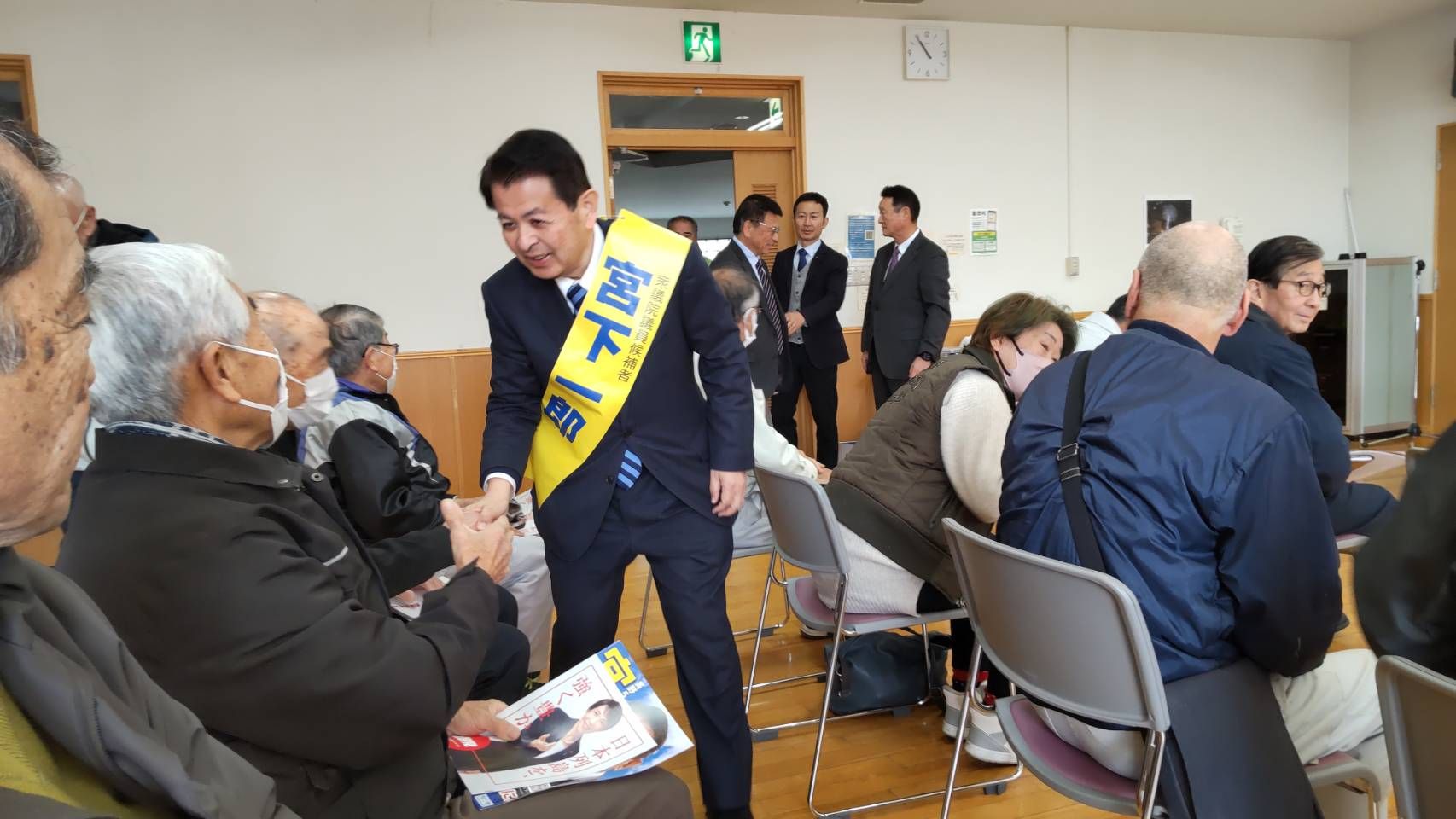 お集りをいただいた皆さまお一人お一人と固い握手を交わし、宮下一郎の必死の思いをお伝えしました。