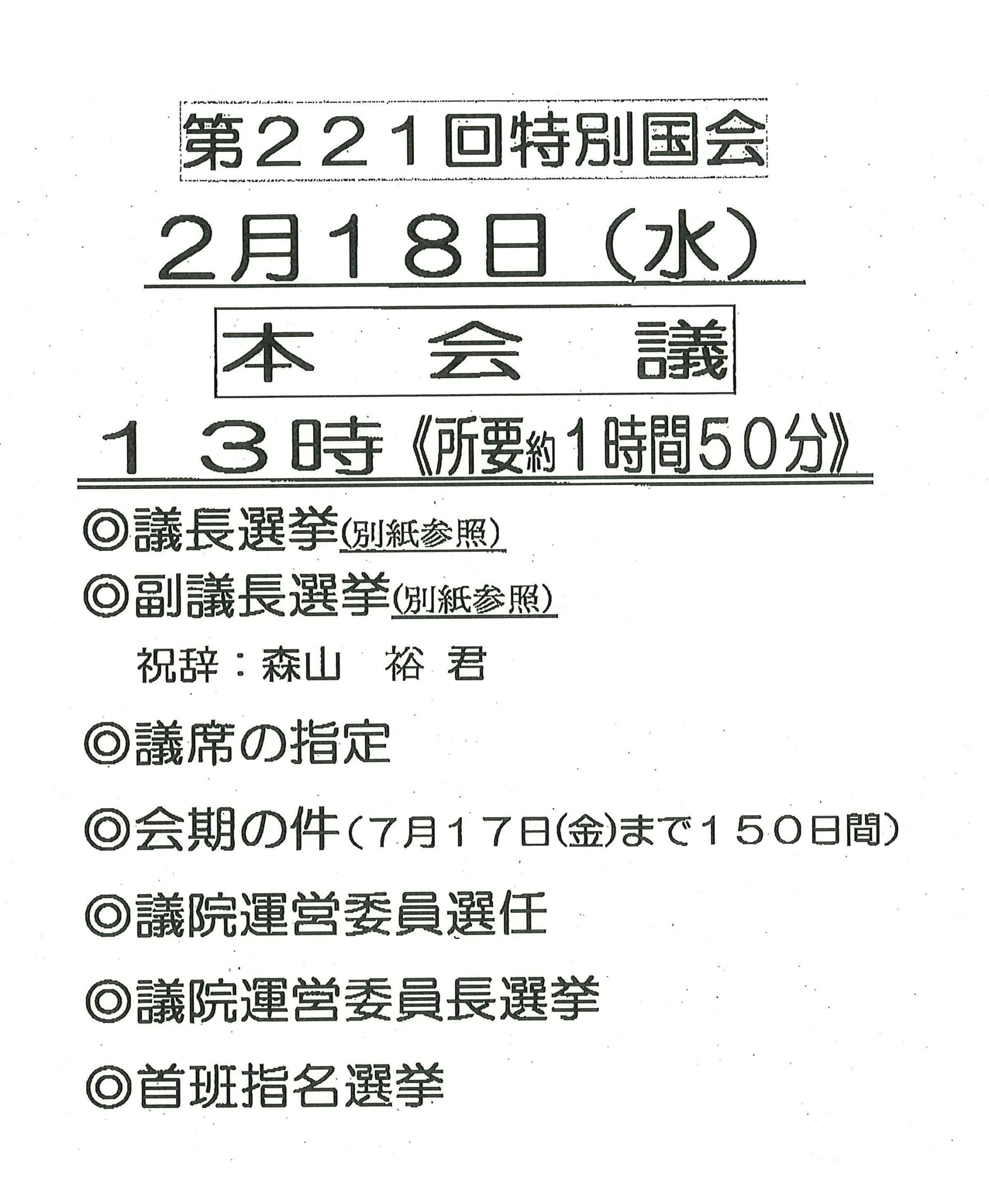 2月18日は、特別国会に初登院し、両院議員総会、衆議院本会議、農林役員会に出席しました。