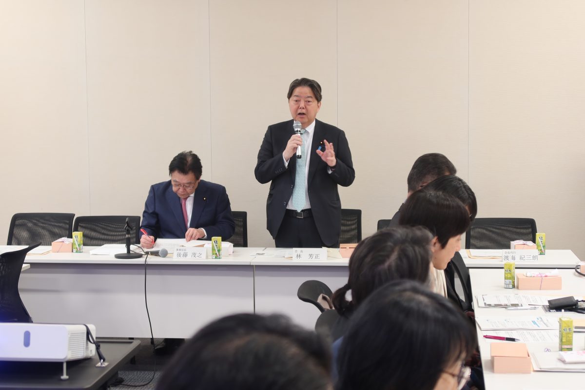 引き続いて、江藤拓農林水産大臣に対し、「食料安全保障強化本部」による決議申し入れを行いました。