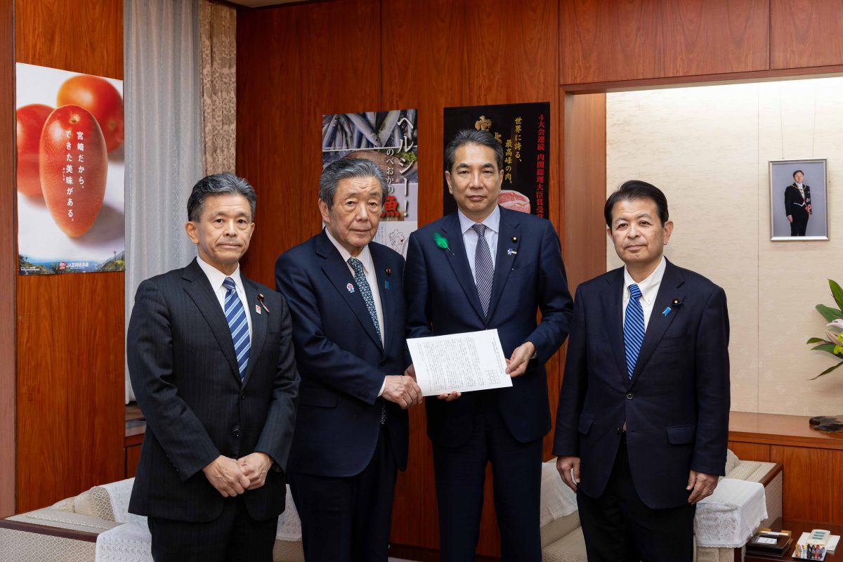 午後には、今朝閣議決定された「新たな食料・農業・農村基本計画」の実行性確保に向けて、私が本部長代理を務める「食料安全保障強化本部」で取りまとめた決議の申入れを、石破茂内閣総理大臣に対して行いました。