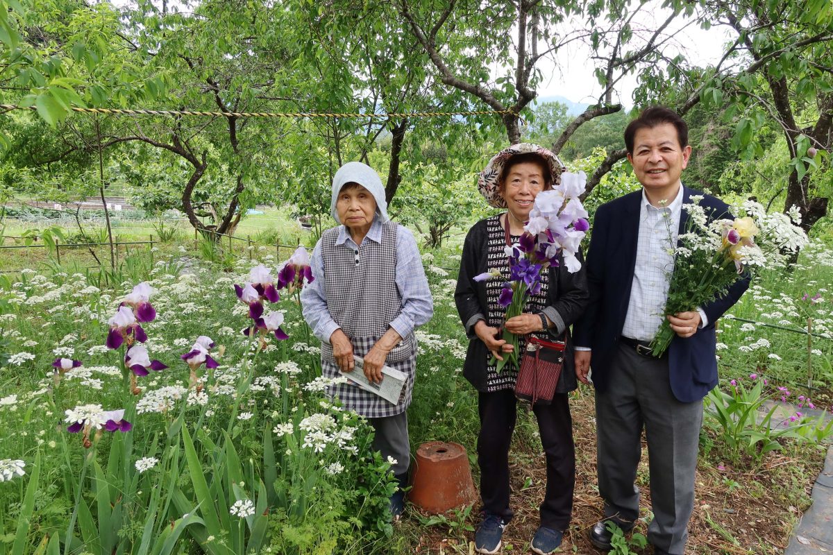 喬木フラワーパークでは、「アイリス・オルレア祭」の最終日でした。管理されている皆様から、美しいお花を頂くとともに、今後のフラワーパーク周辺の観光開発についての夢も聞かせて頂きました。