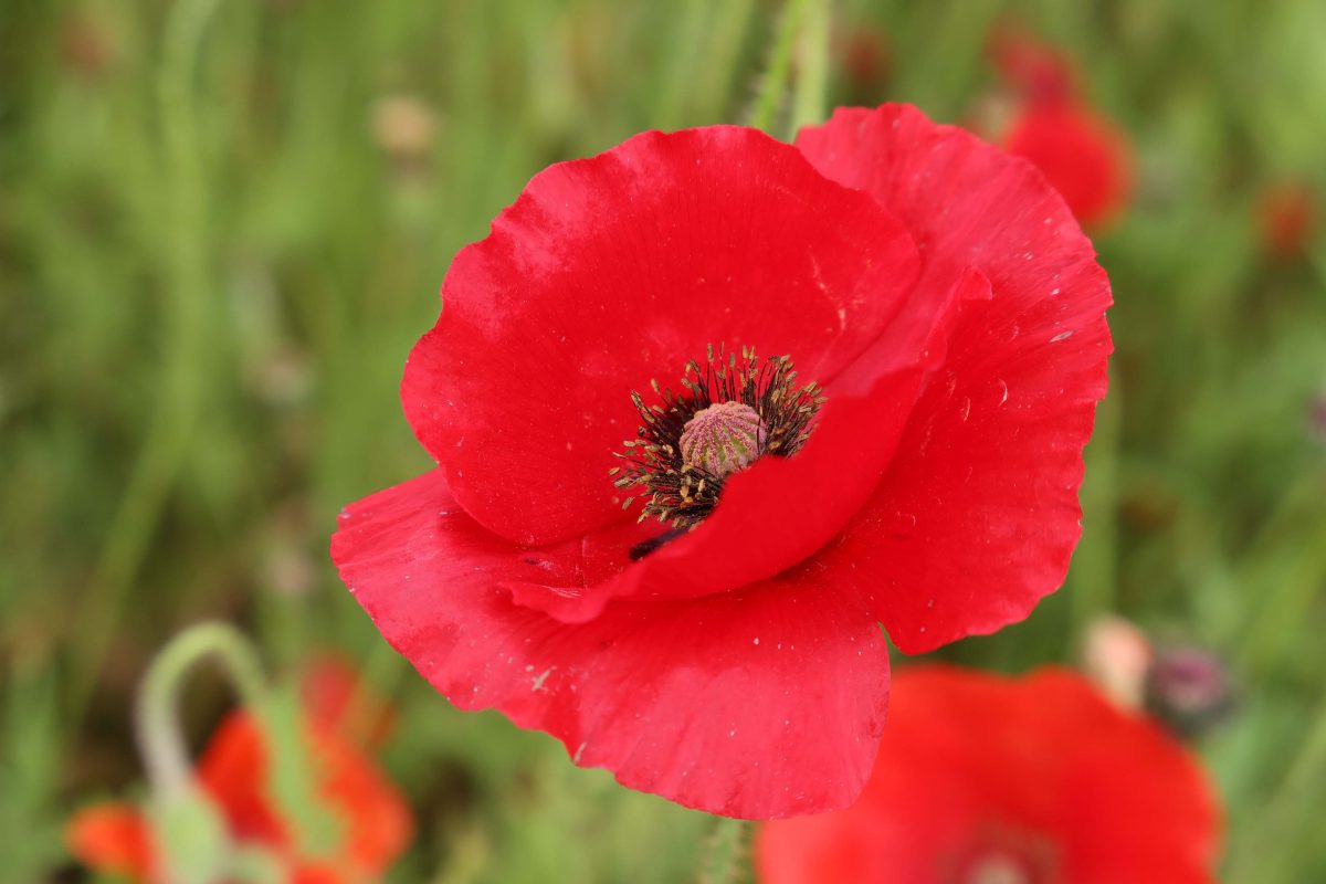 昨日からの雨に耐えた多くのポピーの花が美しい姿を見せてくれました。