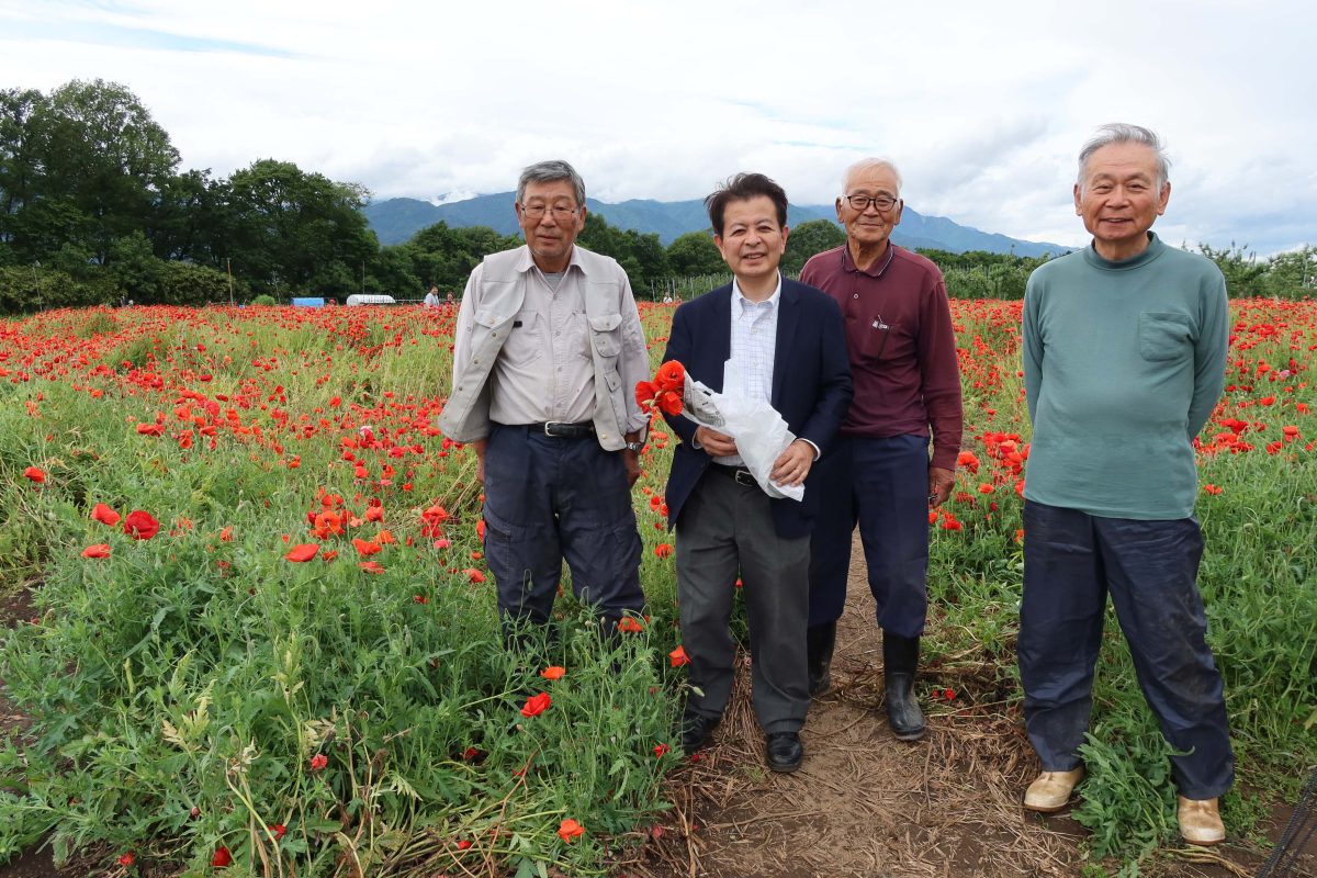 ポピー農園を管理されている皆様との記念写真です。ポピーの種は、昨年10月に蒔いたそうです。