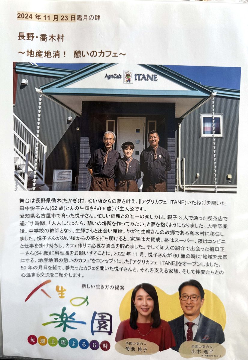 昨年11月にテレビ朝日系の「人生の楽園」にお店を作った経緯などが放送され、全国からお客さんが見えるなど、大きな反響があったそうです。