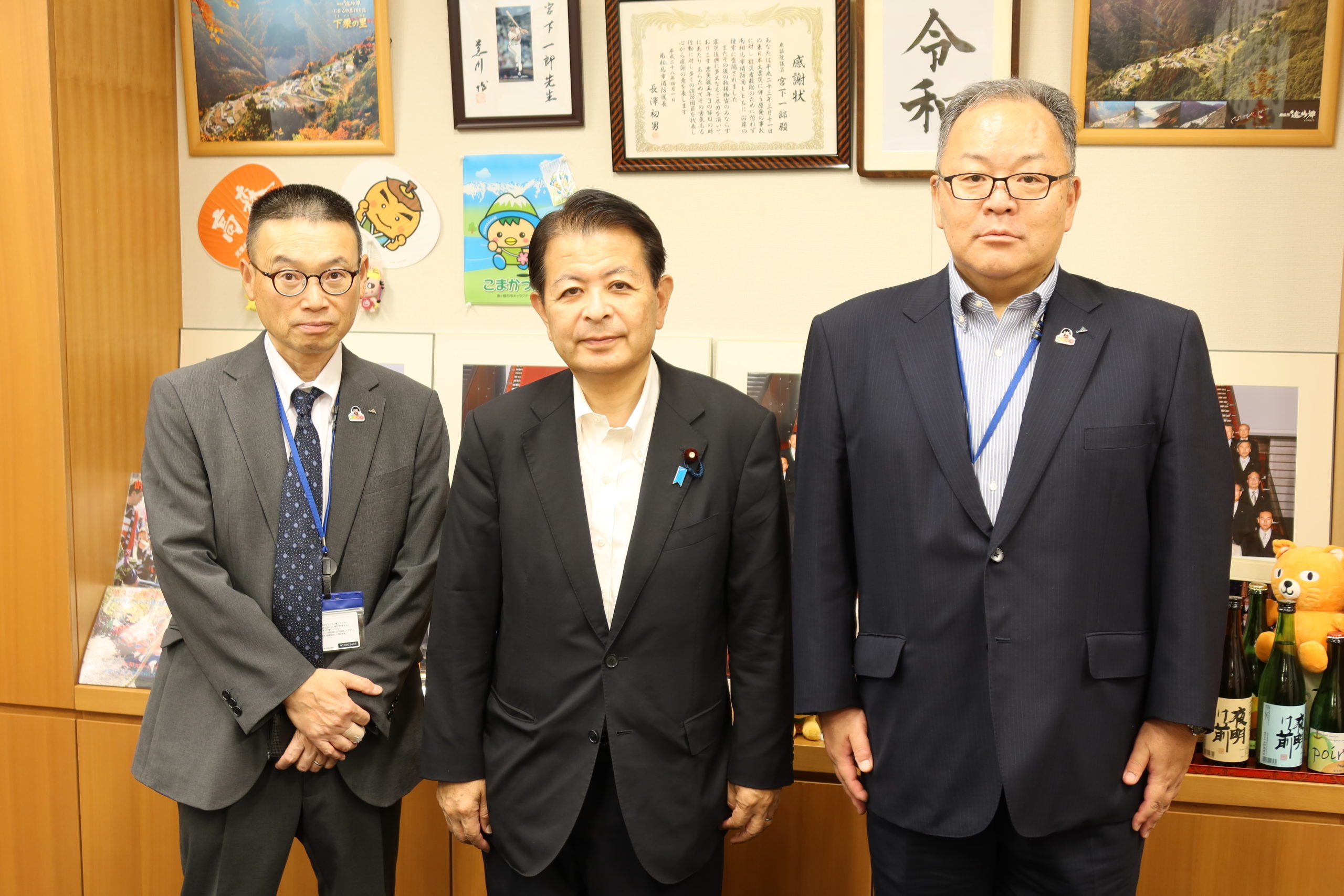 JA長野中央会の新芝正秀専務(写真左)、中塚徹常務との記念撮影です。