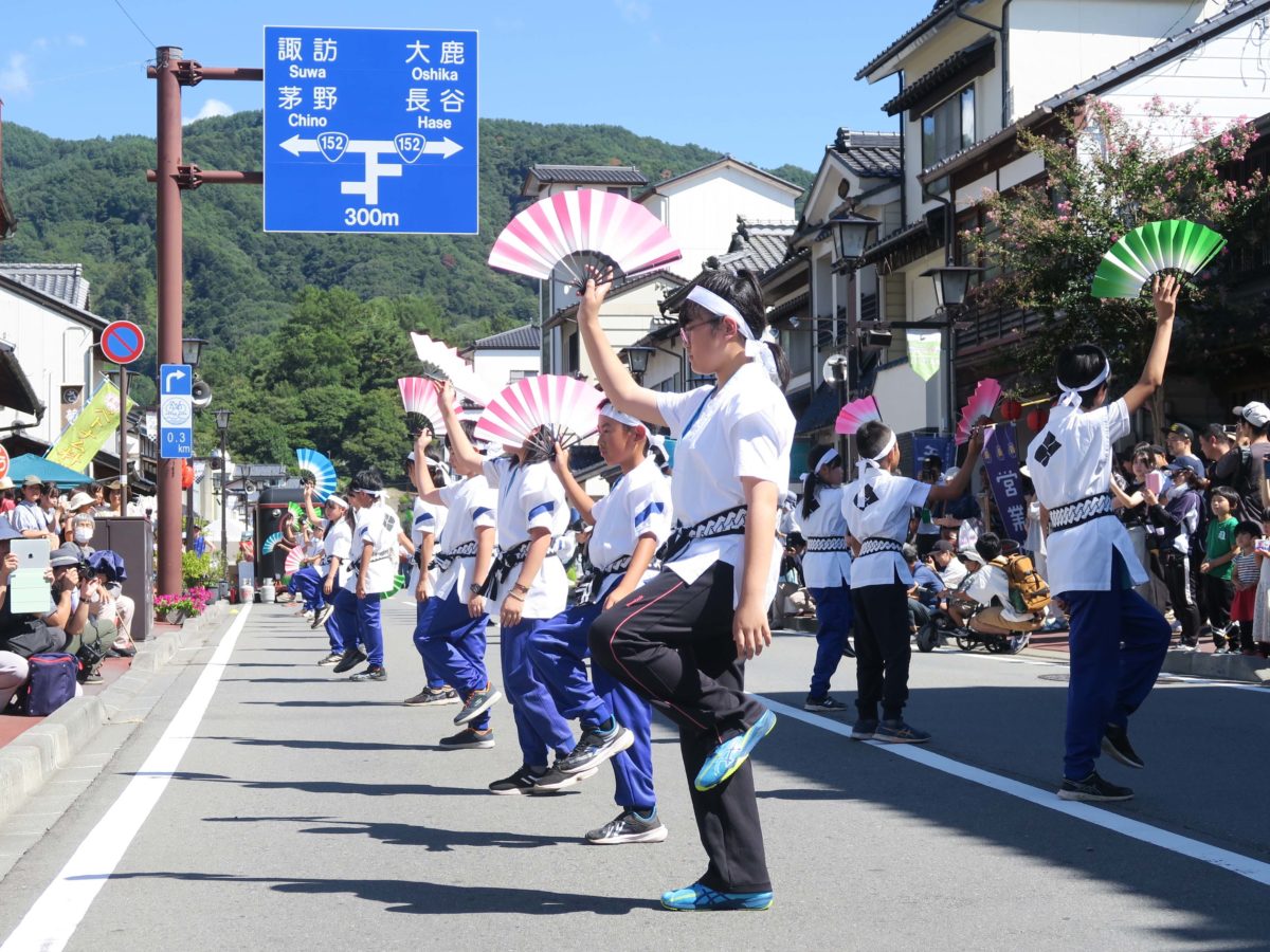 高遠北小学校の皆さんによる「孤軍高遠城」の踊りの披露の様子です。