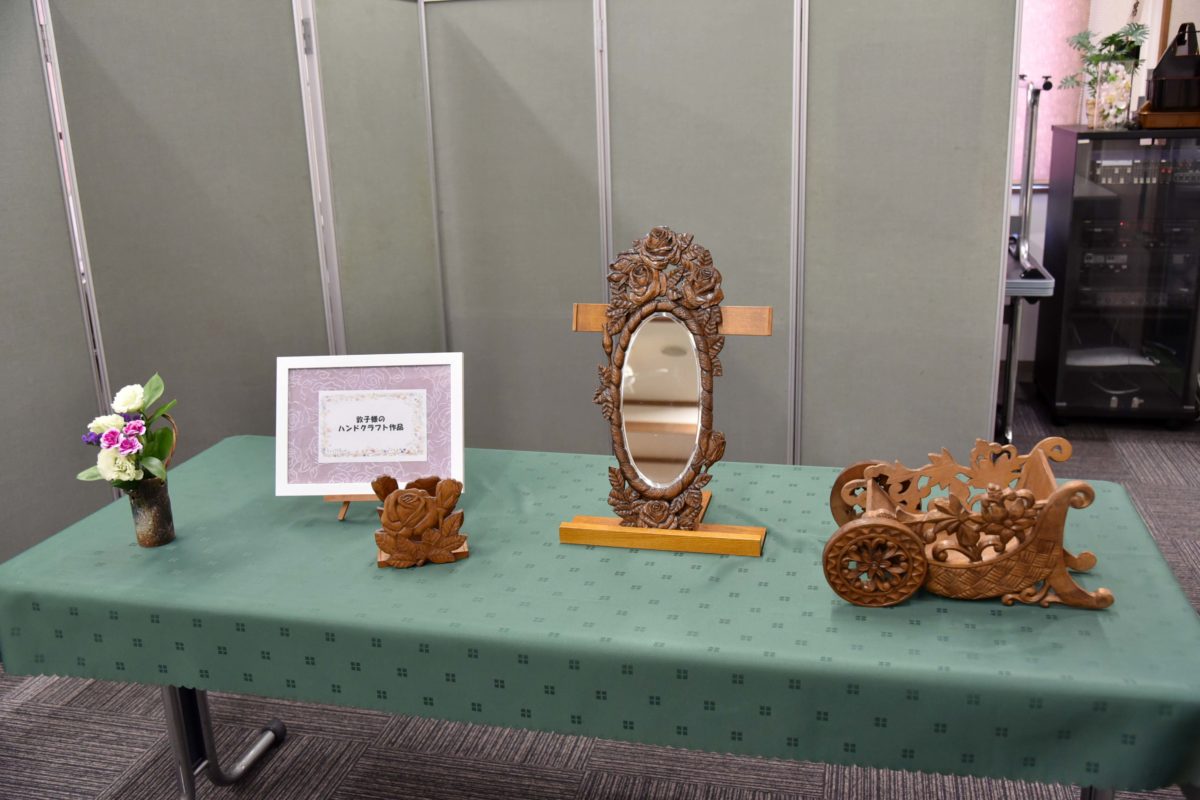 母は草月流の師範の資格を持ち、花を愛する人でした。さらに、このような木彫りの作品作りもしていました。