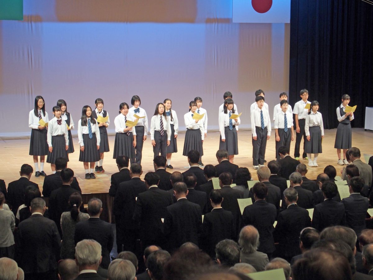 はじめに、会場全員で「箕輪町の歌」の斉唱が行われました。
